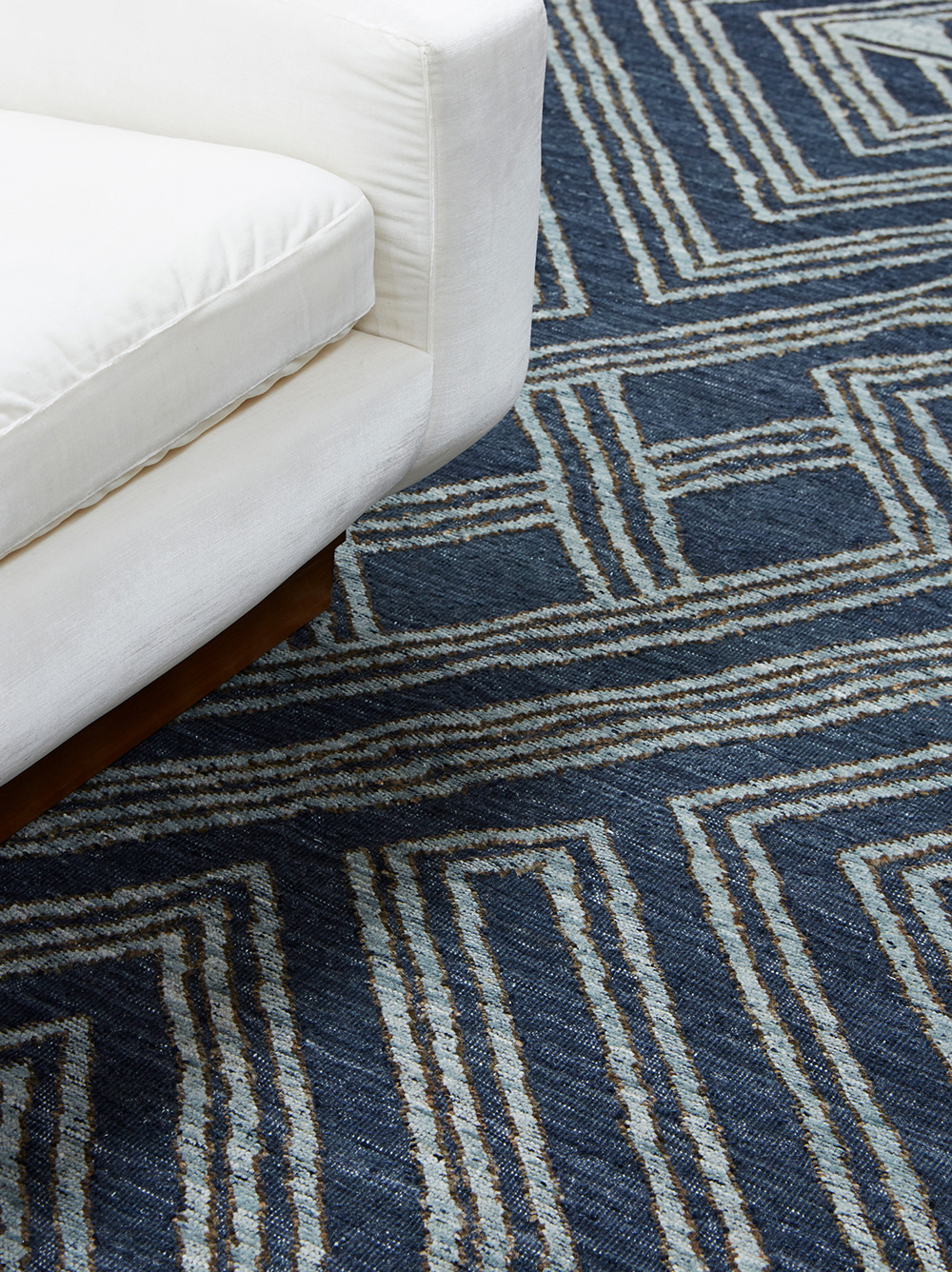 Crafted to improve with age and develop a patina in the tradition of antique carpets. The unique designs in this collection stem from an exploration of African culture and the shapes and colours found in its traditional textiles. Designed by Jawed Ahmadi, the compositions are mostly inspired by Kuba cloth; commonly produced in the Democratic Republic of Congo and typically characterised by vast and varied abstract geometric designs.