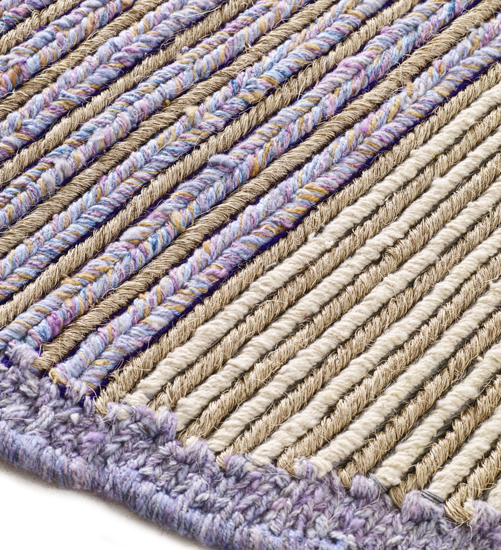 Designed by Mae Engelgeer, the Uilas collection takes inspiration from the landscape of the Colombian province of Huila. Referencing the interaction of two forces of nature: the river Rio Magdalena and the rough desert of Tatacoa in which the river flows through. In this collection, the use of natural sisal and the irregular edges of each rug represent the heavily eroded landscape found in the Tatacoa desert while the colourful wool stripes are reminiscent of the river running through the valley.