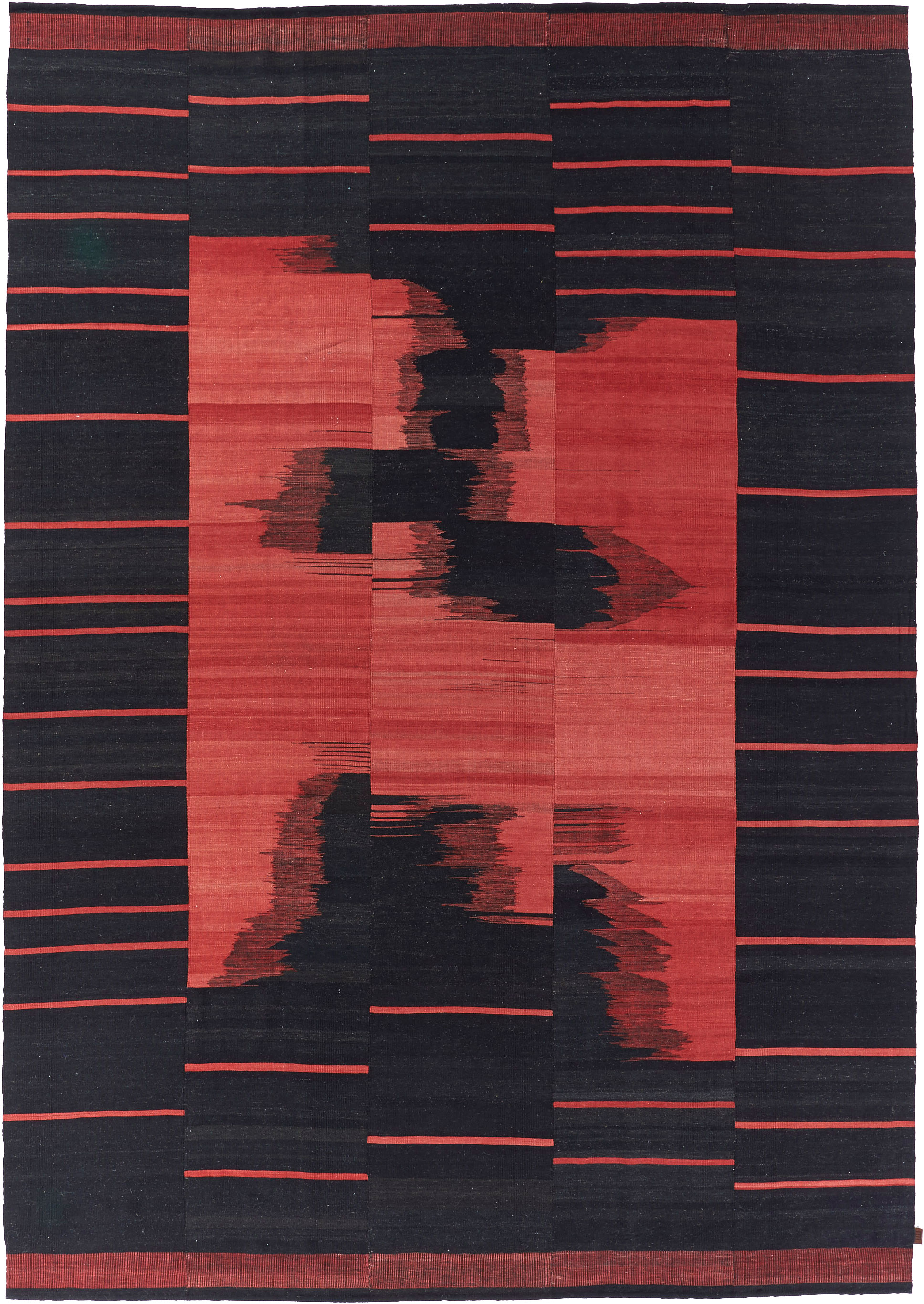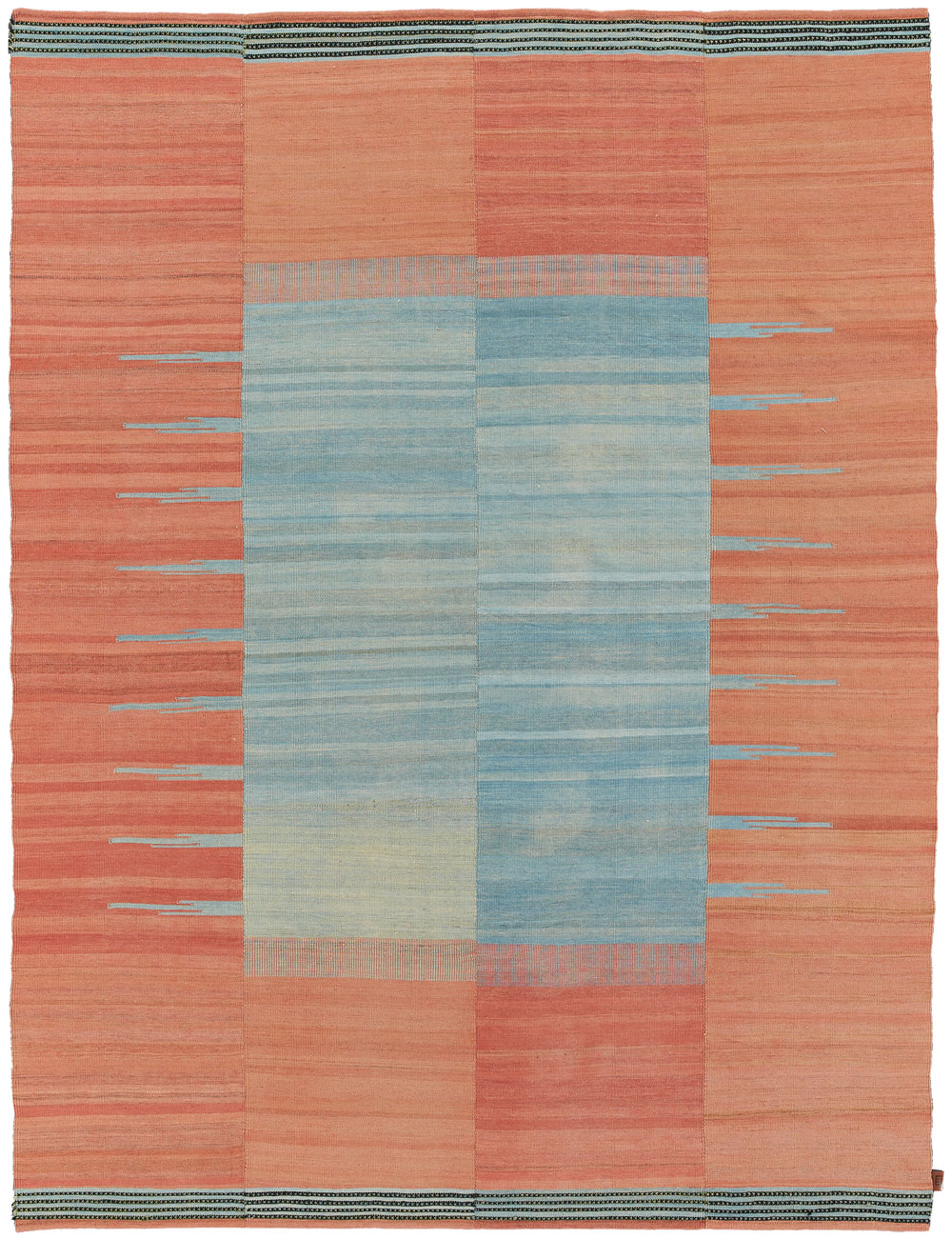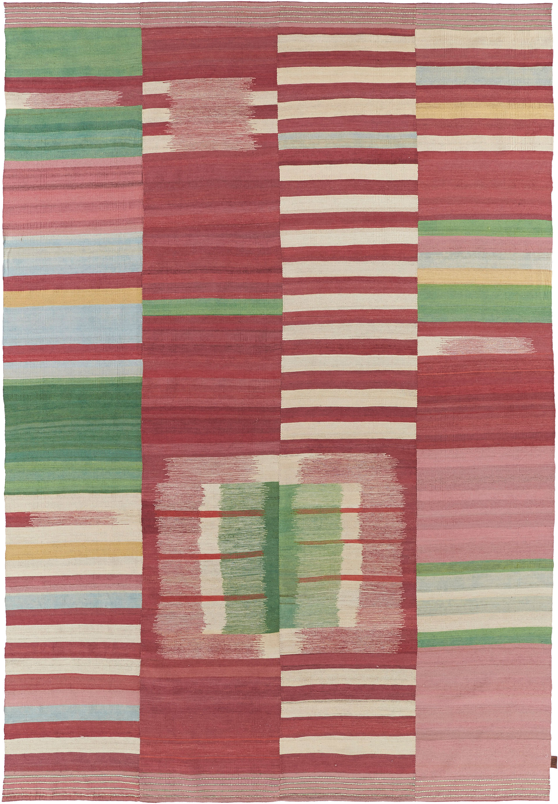 Mazandaran is situated between the Caspian Sea and the imposing presence of the Elburz Mountains. It is one of the most culturally diverse regions of Iran, though it was thought that no kilims (locally known as ‘gelims’) were produced there. Werner Weber, rug trader and author of ‘Undiscovered Minimalism, Gelims From Northern Iran’ is responsible for the rediscovery of these enigmatic weavings on his visit to the hinterland of Mazandaran in the mid 90’s. Very few knew until then, that tucked away in the mountainous wilderness of Mazandaran, existed such expressive heirloom weavings with ‘minimalist’ abstract designs unlike anything of their time.