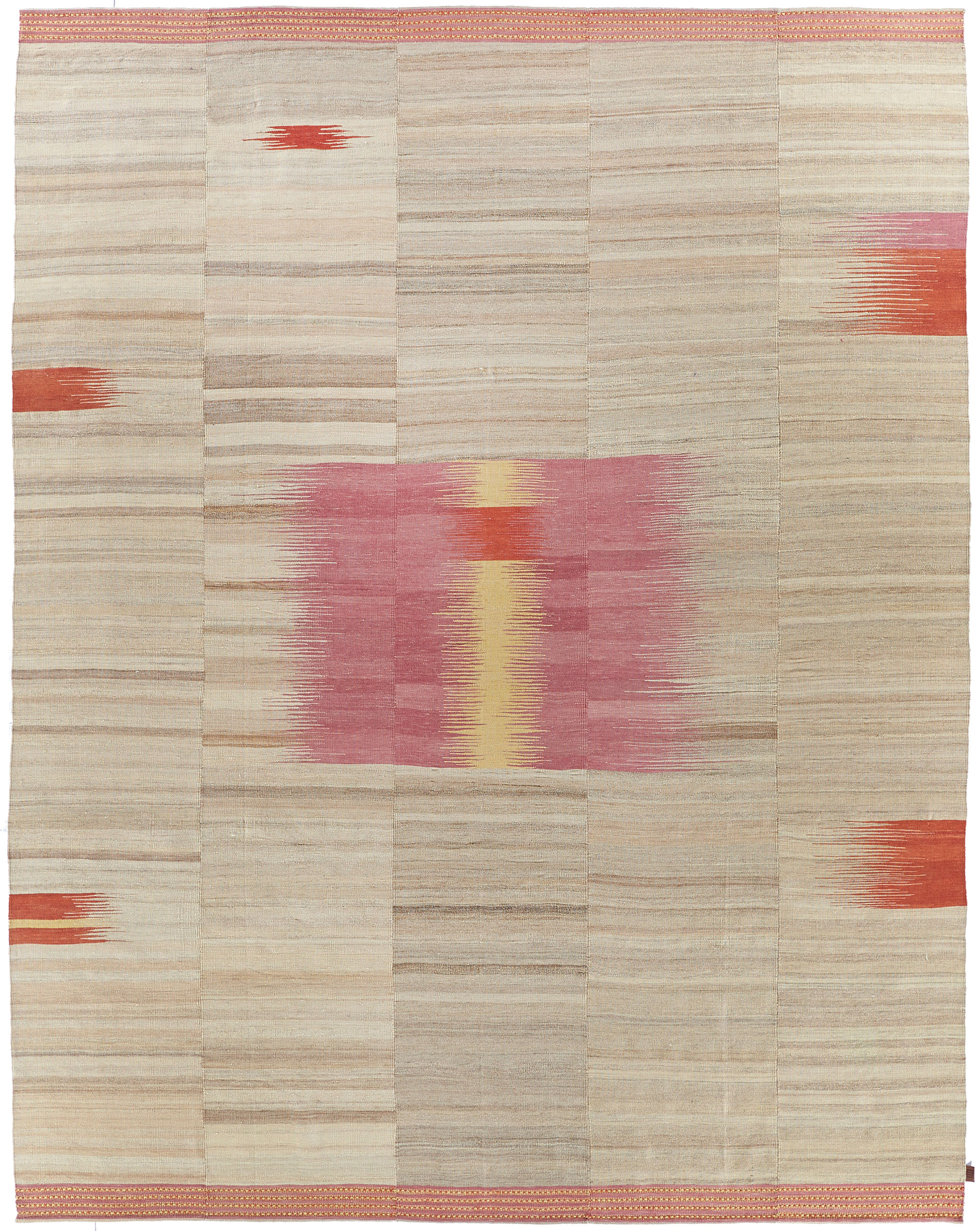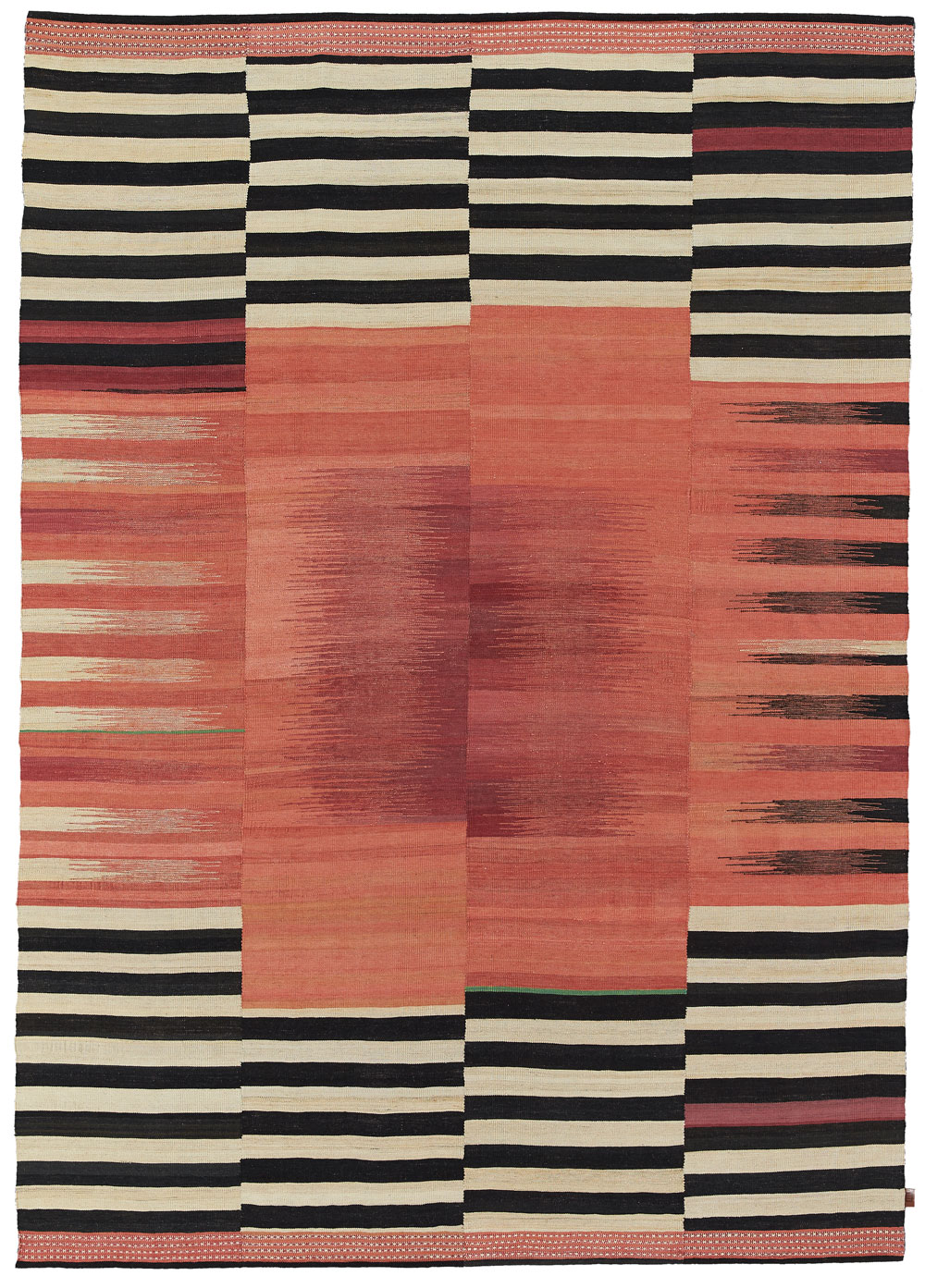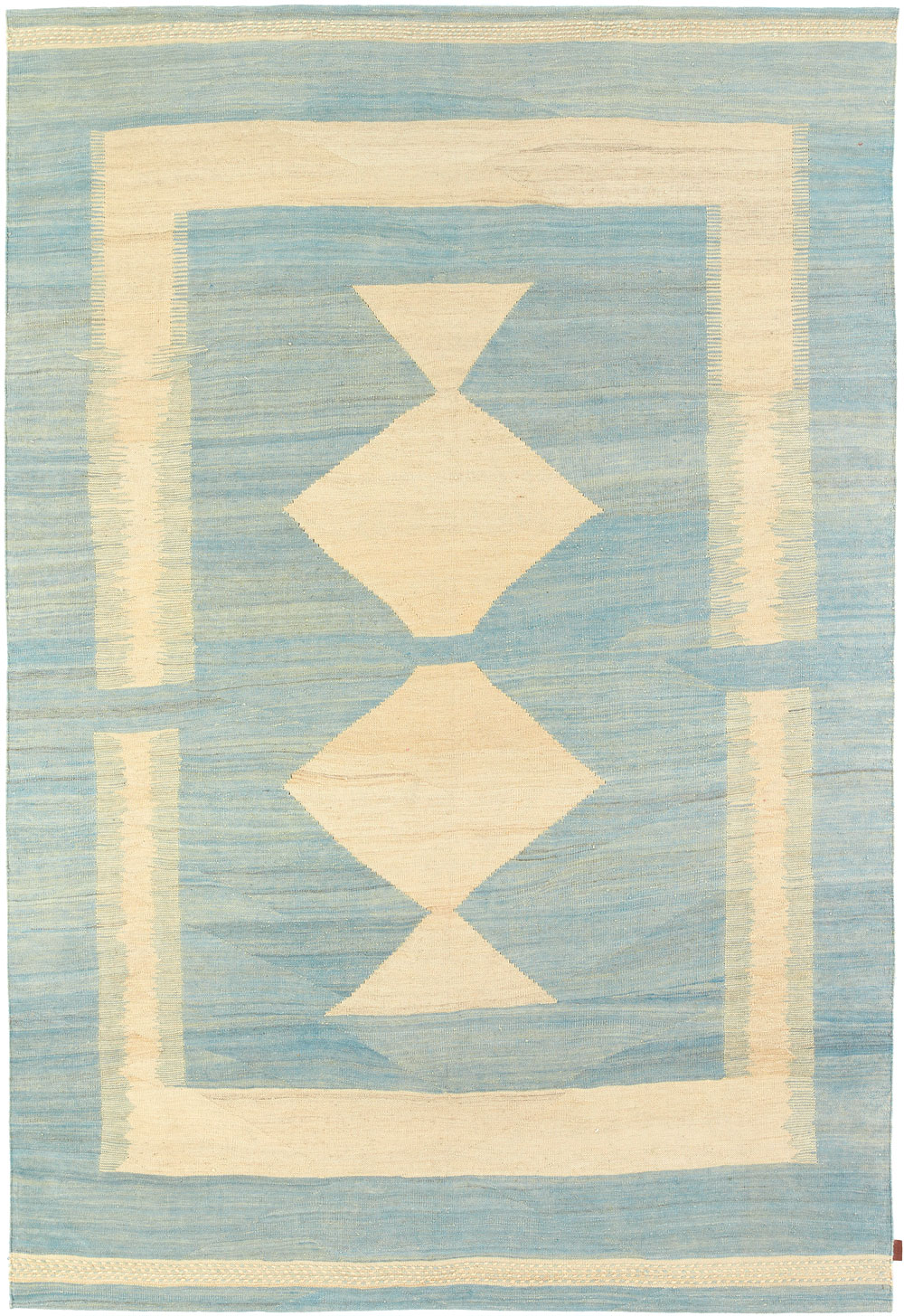 Mazandaran is situated between the Caspian Sea and the imposing presence of the Elburz Mountains. It is one of the most culturally diverse regions of Iran, though it was thought that no kilims (locally known as ‘gelims’) were produced there. Werner Weber, rug trader and author of ‘Undiscovered Minimalism, Gelims From Northern Iran’ is responsible for the rediscovery of these enigmatic weavings on his visit to the hinterland of Mazandaran in the mid 90’s. Very few knew until then, that tucked away in the mountainous wilderness of Mazandaran, existed such expressive heirloom weavings with ‘minimalist’ abstract designs unlike anything of their time.