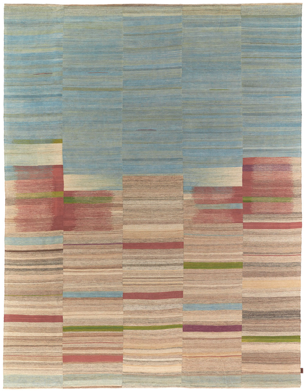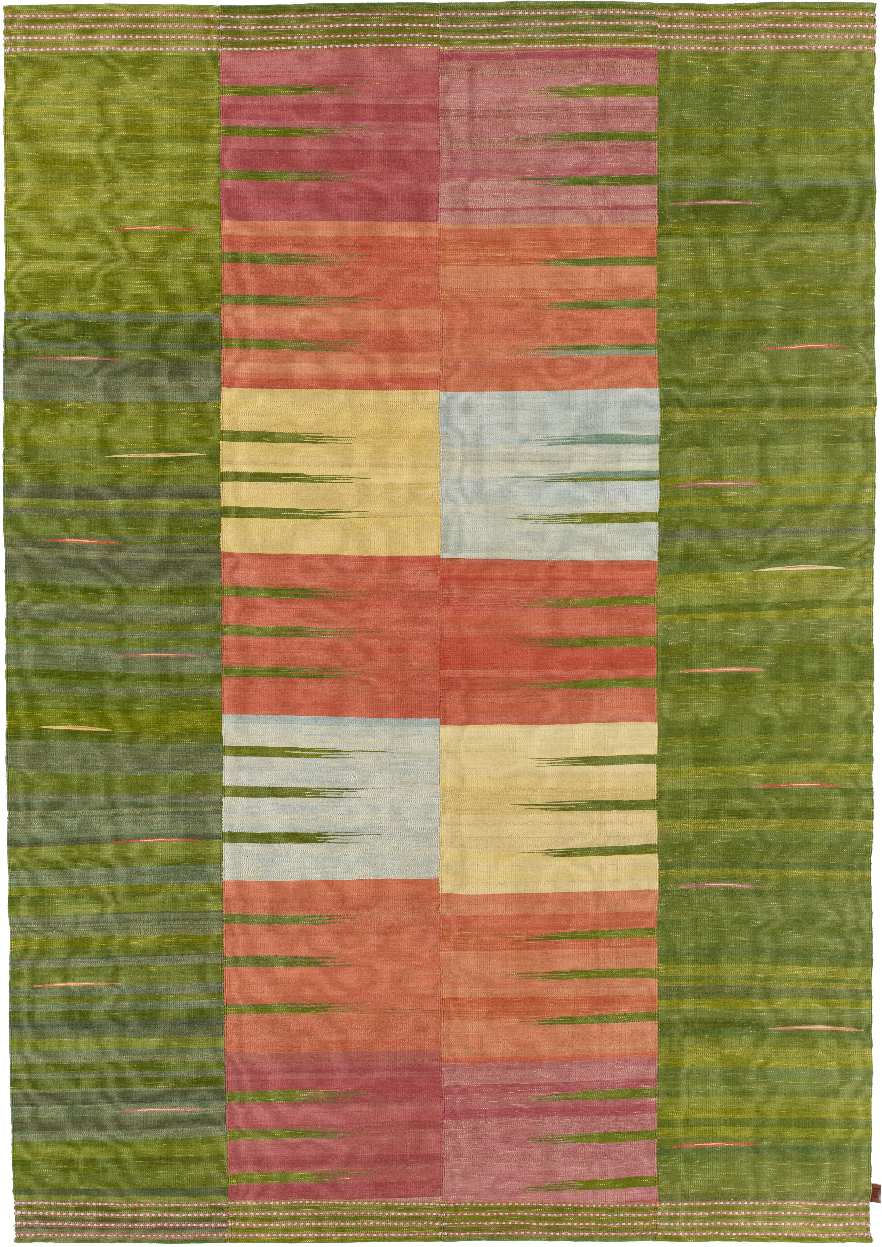 Hand-woven on narrow wooden looms, each rug consists of several individual panels that are 20 to 50cm wide. These panels are then carefully sewn together to the desired width and length. With a colour spectrum ranging from warm, earthy tones to pastel blues and rich greens, each Edelgrund rug is an expression of the diversity of the area.
