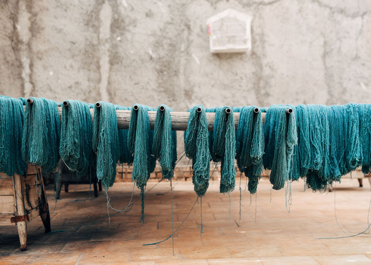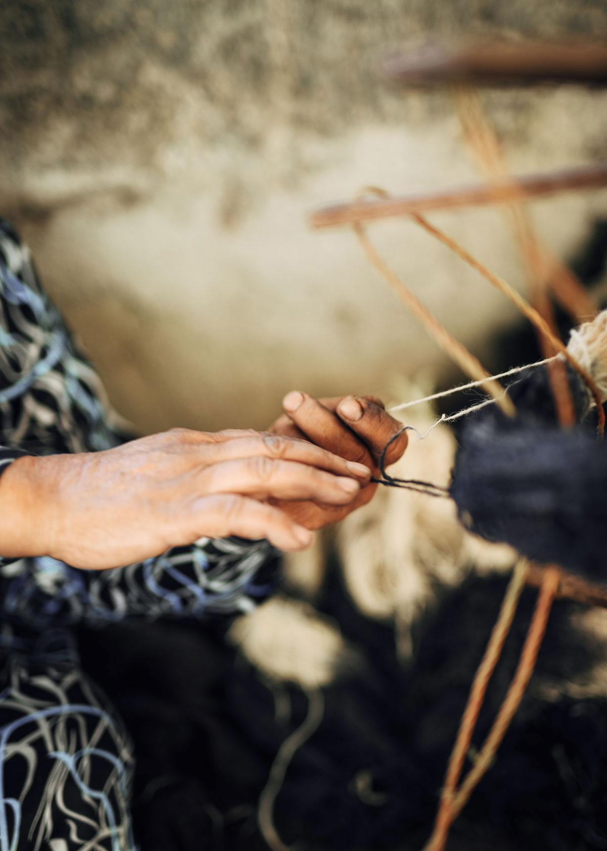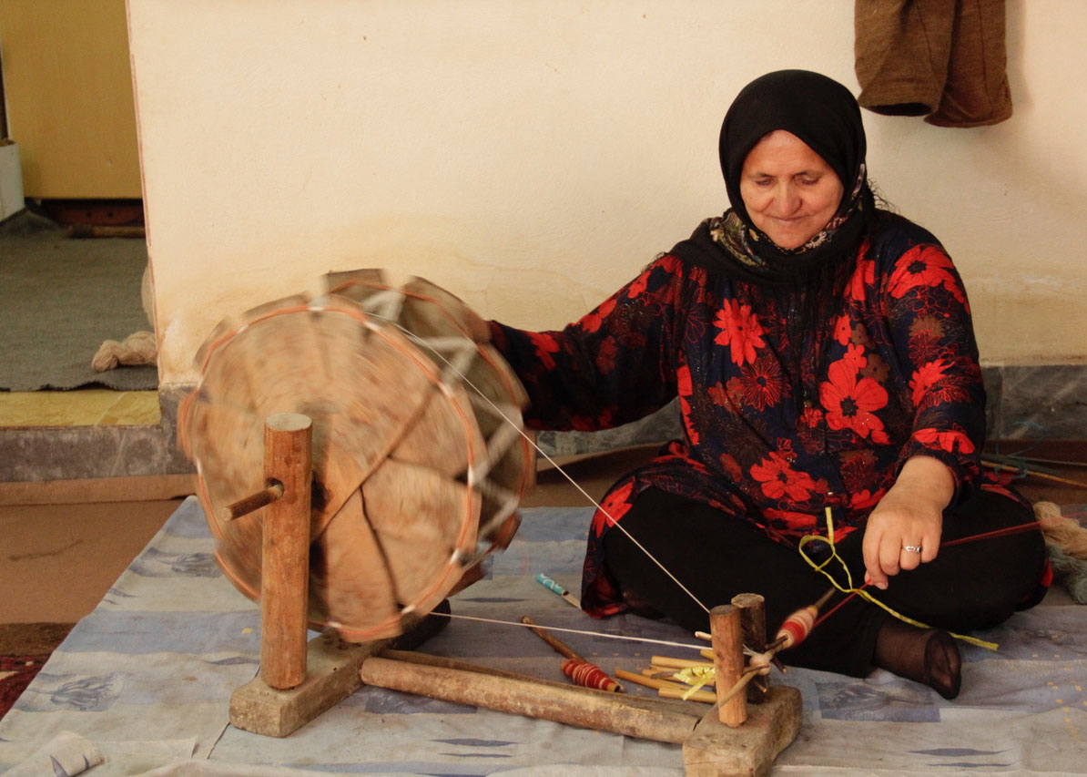 Wool being hand spun by the local weavers