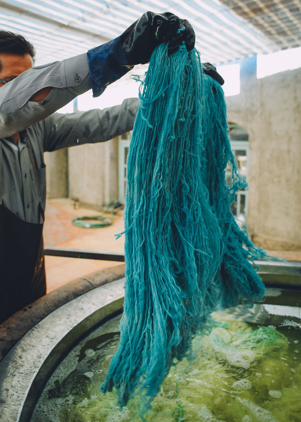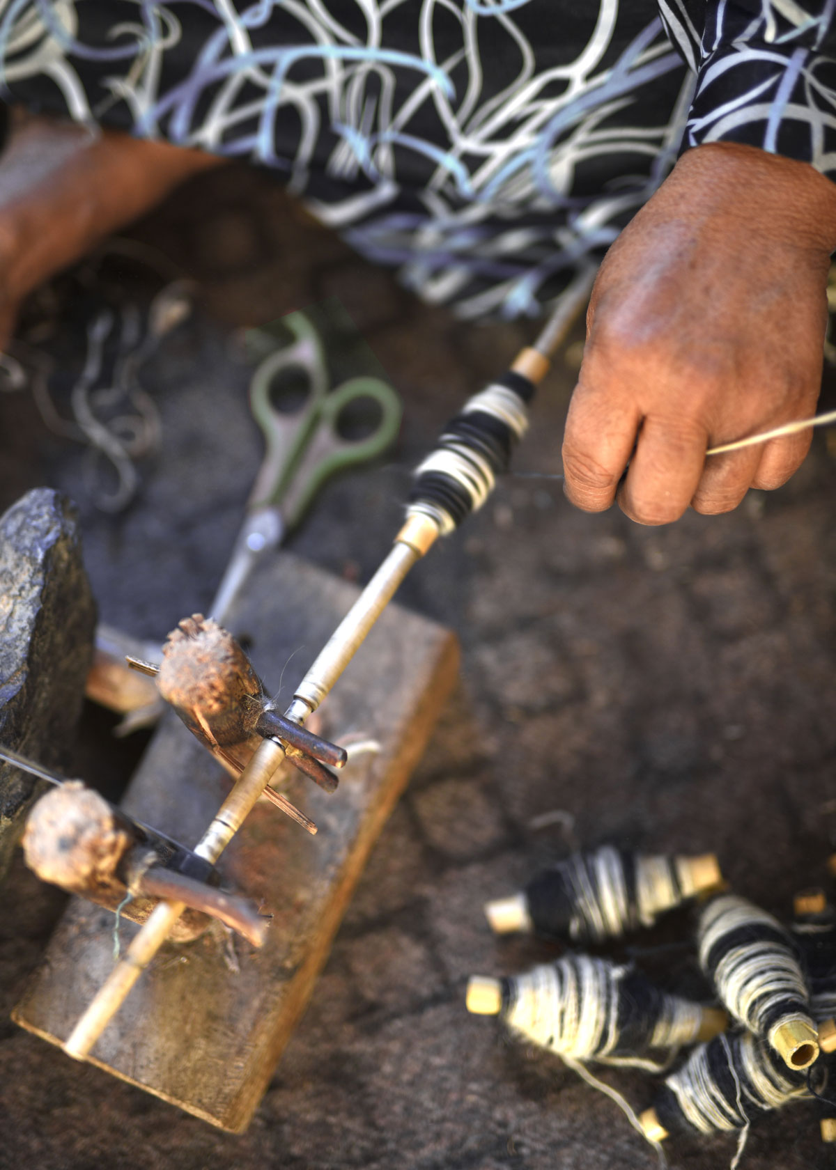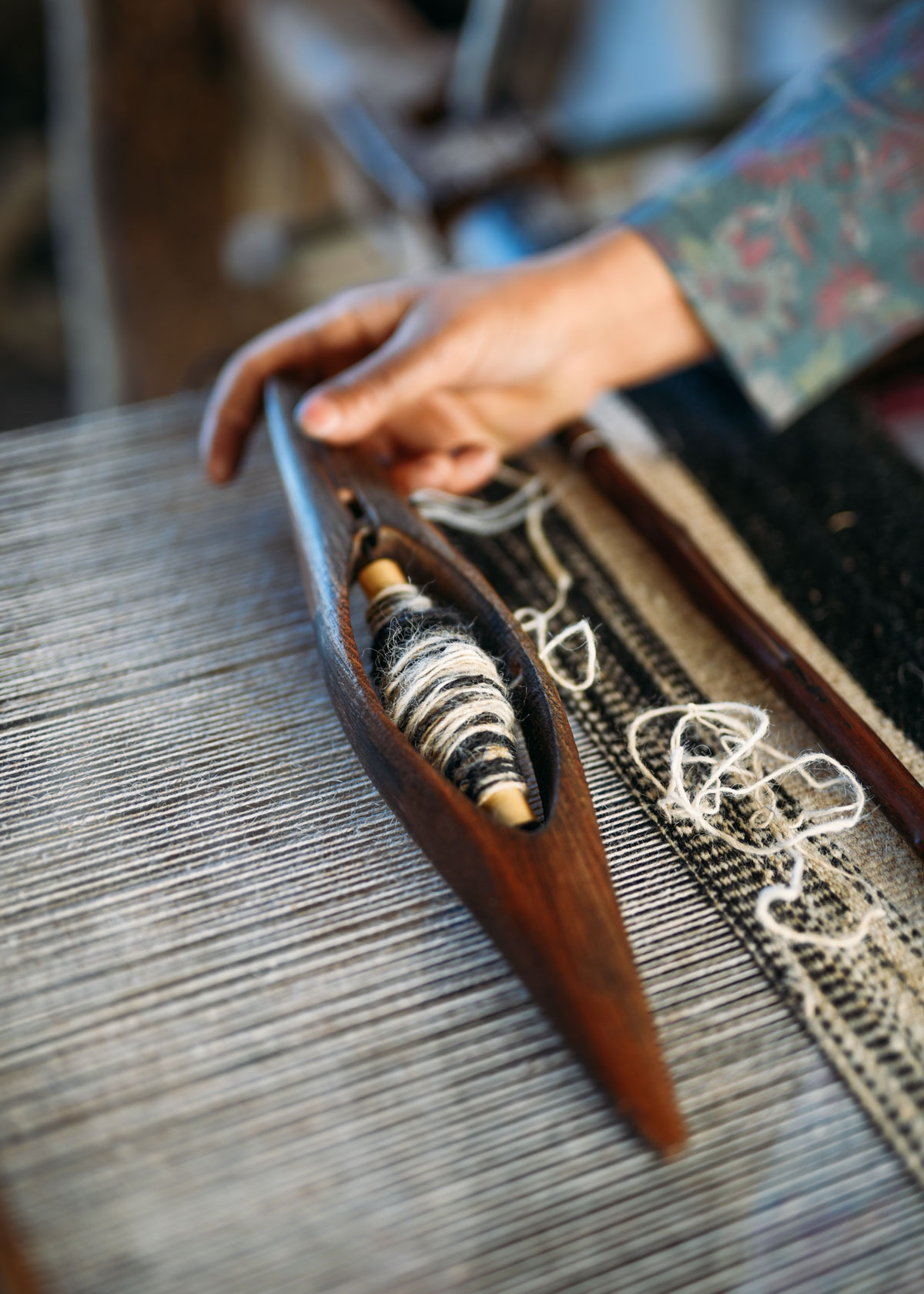 Wool being hand spun by the local weavers