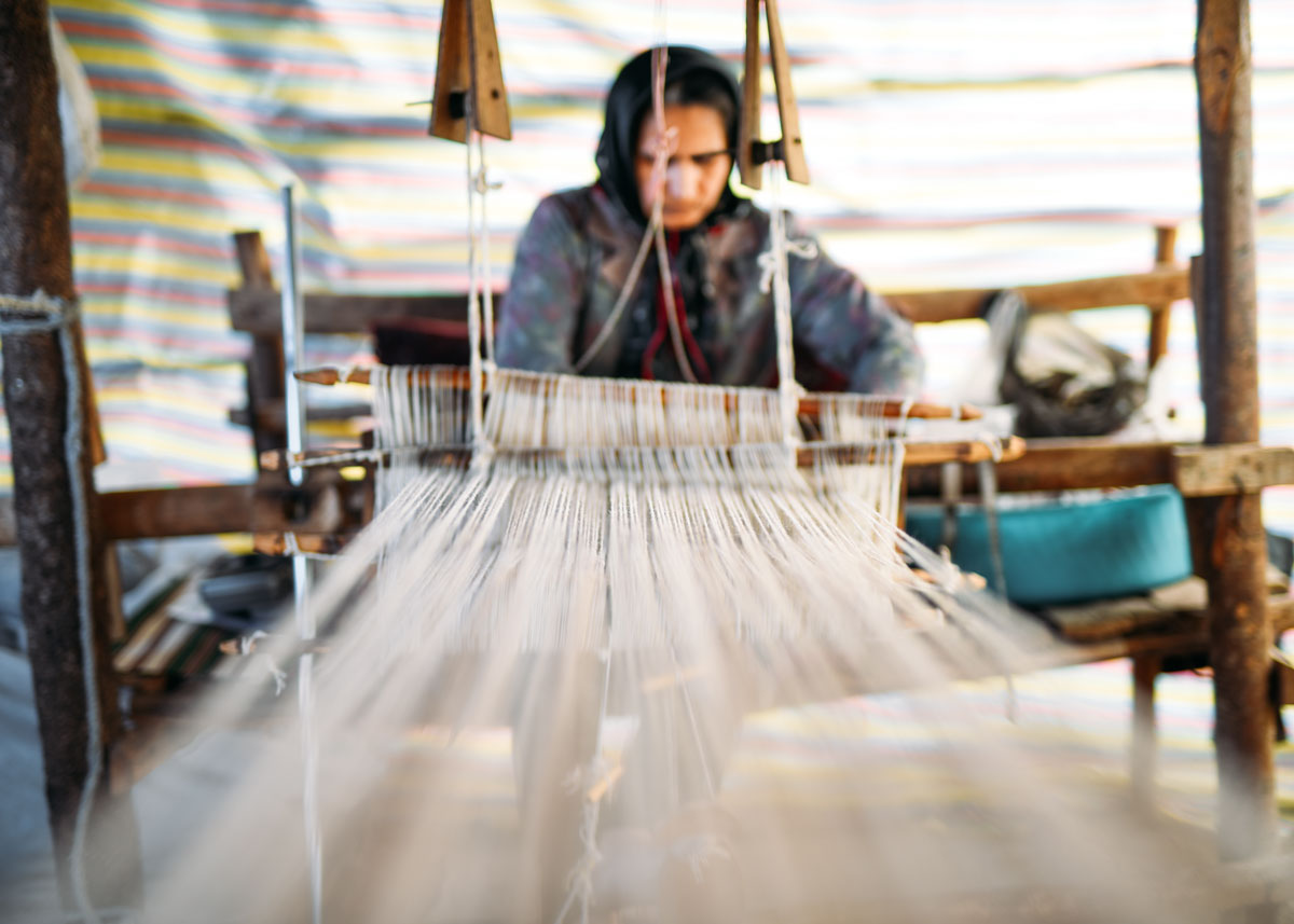 Each rug is made on traditional small wooden looms