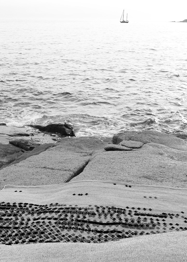 For The ‘Moving Landscapes’ collection, designer Paulina Herrera drew inspiration from the Sardinian shoreline, starting with basic in-situ sketches and progressing as she explored the shapes and colours of her surrounding environment using watercolours, canvas, paint, ceramics and finally woven textiles.