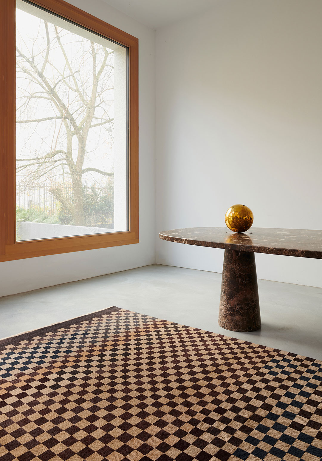 We are big fans of colours and colour combinations, but at the same time we are also crazy about materials and how a design can completely change when combined with either another material or a different weaving technique. We start with a sketch, sometimes drawn by hand, sometimes developed digitally. If the idea translates well onto the paper, then we workshop our idea to find out if it can be achieved in production with our weavers. From here, we focus on selecting colours for sampling to see how our idea looks with the selected materials. Mostly we change things a bit to come closer to our original vision, sometimes samples show a surprising and unexpected effect that we love, and then we rework the design based on actual made pieces. Anything is possible. Sometimes a new design is born easily, sometimes it takes years, and sometimes an idea never becomes a rug.