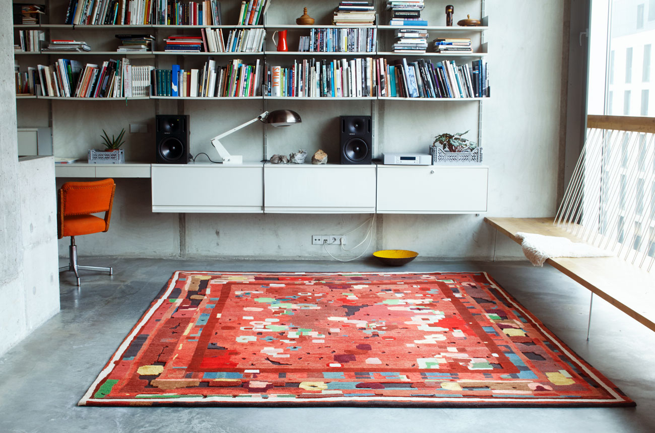 FRANZISKA – By pure accident. I had created a new artwork based around a garden as a symbol of Eden. Experimenting with materials and methods, I commissioned this artwork to be made as a rug through a craftsman in Iran, a country which has a very long history of rug making. A year later, I travelled to Iran to collect my artwork and fell in love with rugs – the hand-knotted technique, the use of materials, and the expansive colour range of hand-dyed yarns. This is how Reuber Henning started.