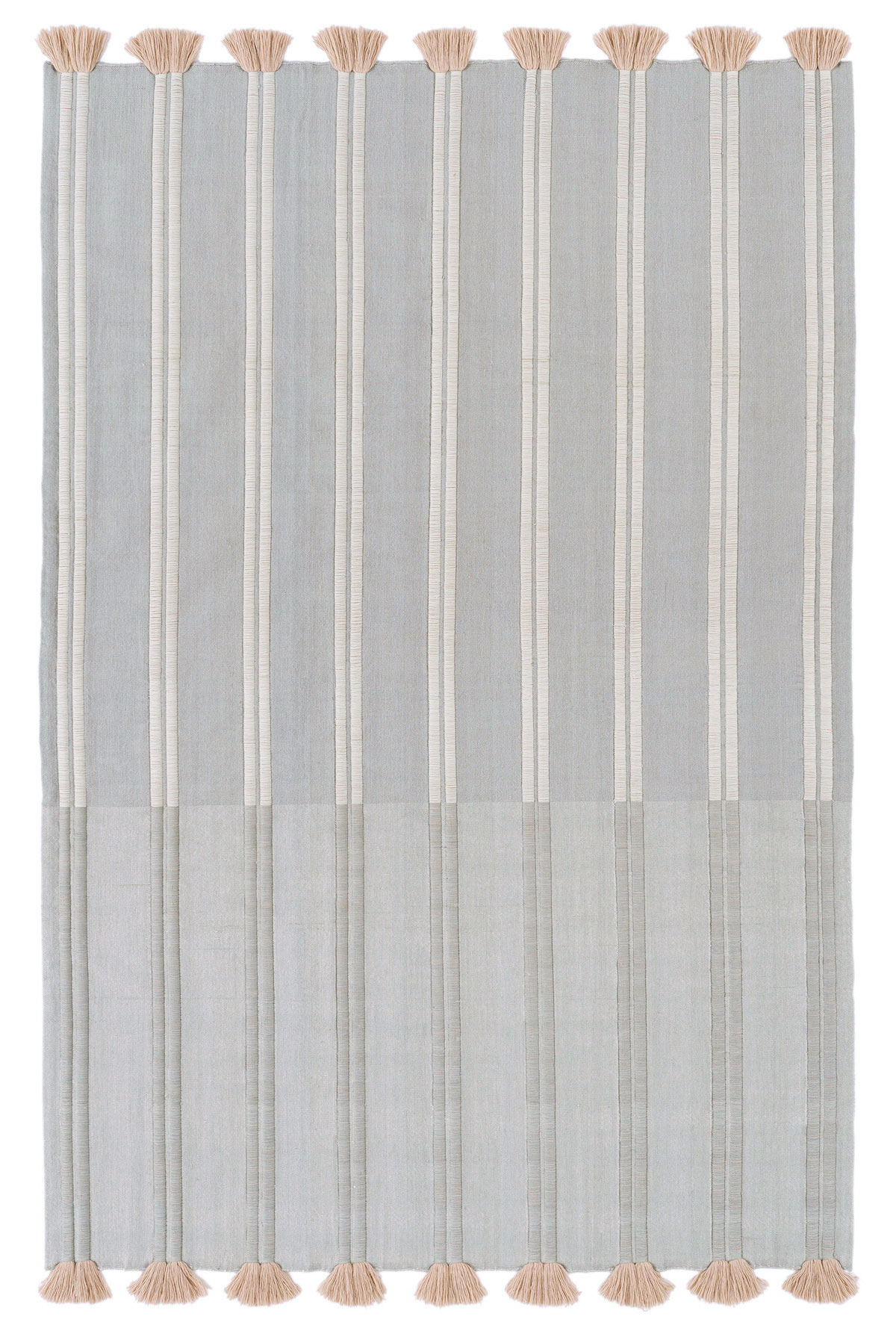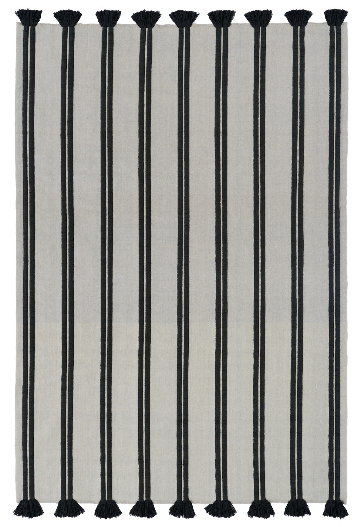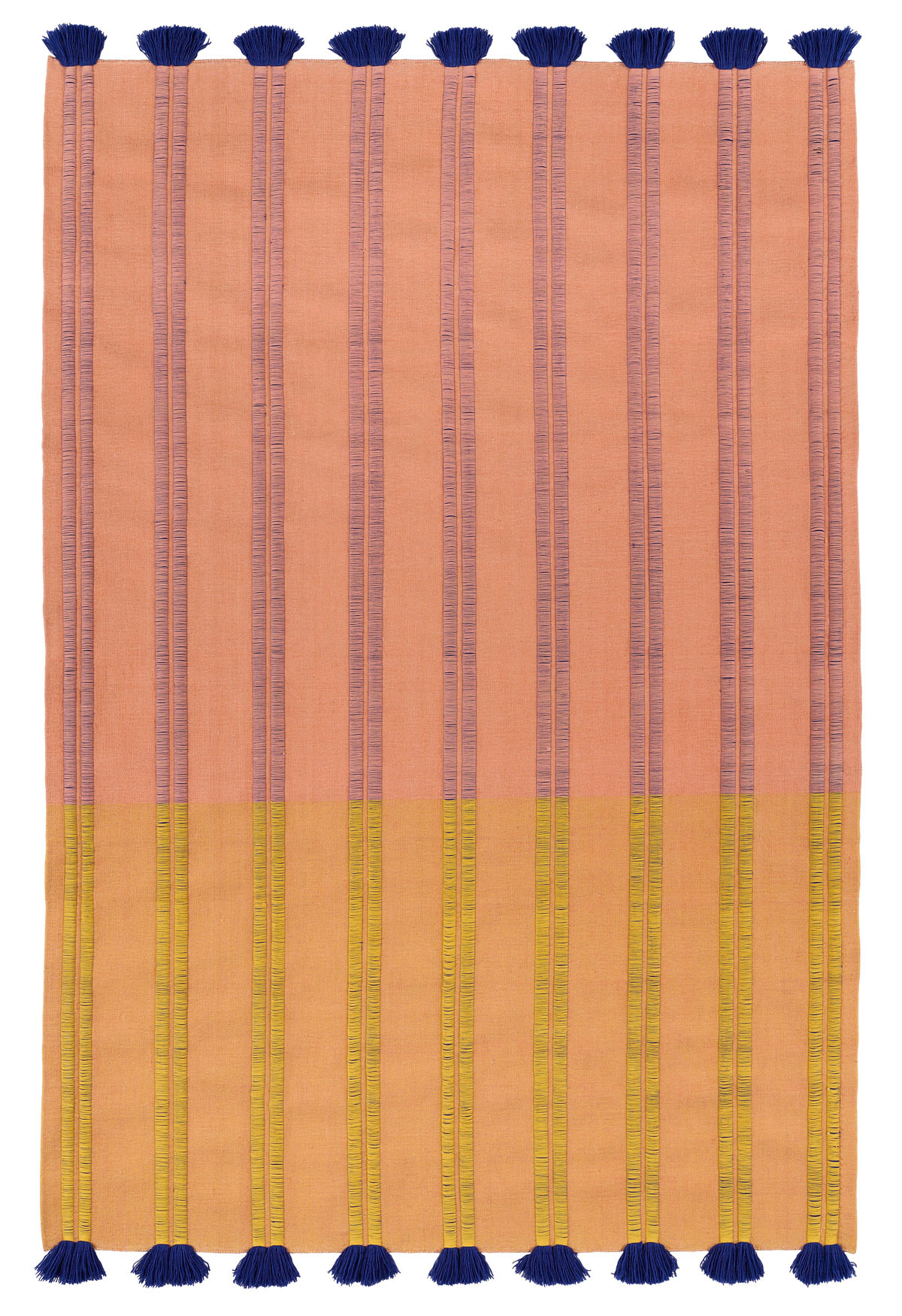 B – Homeland, from our Stripes collection. Each rug is one of a kind because we use left-over yarn and the weavers are allowed to choose the design themselves. Three weavers work side by side and the placement of colour and thickness of each stripe is decided by each individual weaver. Even though each panel of the rug is made using the same material and colours, each section is unique and reflects the craftsmanship that goes into each rug.