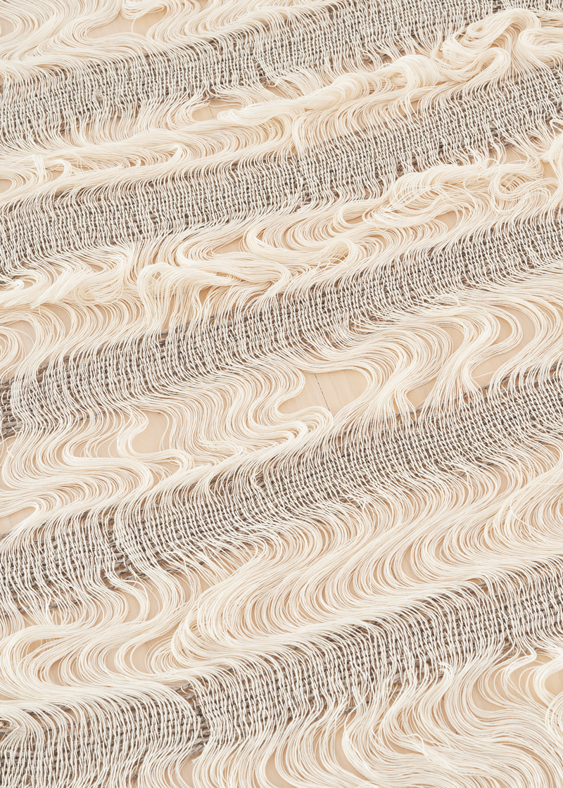 Inspired by the shoreline of Sardinia, the ‘Moving Landscapes’ exhibition moves fluidly like the tide, capturing the essence of under-water life and the rugged coastline. For this collection, Mariantonia Urru partnered with designer Paulina Herrera to create a series of contemporary designs. Starting with basic in-situ sketches, Paulina Herrera’s concepts progressed as she explored elements of her surrounding environment using watercolours, paint, ceramics and finally woven textiles. By embracing the traditional weaving styles that Mariantonia Urru are so well known for, the “Moving Landscapes” collection gained depth and texture much like the original environment which inspired Paulina Herrera to begin with.