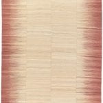The highly detailed designs are reminiscent of abstract modernist paintings, constructed as a series of vertical panels. Individually woven by hand on narrow wooden looms, the panels are meticulously sewn together to create infinitely varied patterns. These dense flat-weave kilims are of the highest quality, ensuring their durability and longevity. Edelgrund’s signature hand-embroidered borders give the Alasht collection a refined elegance.