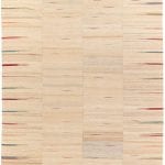 The highly detailed designs are reminiscent of abstract modernist paintings, constructed as a series of vertical panels. Individually woven by hand on narrow wooden looms, the panels are meticulously sewn together to create infinitely varied patterns. These dense flat-weave kilims are of the highest quality, ensuring their durability and longevity. Edelgrund’s signature hand-embroidered borders give the Alasht collection a refined elegance.