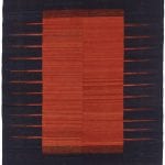 The highly detailed designs are reminiscent of abstract modernist paintings, constructed as a series of vertical panels. Individually woven by hand on narrow wooden looms, the panels are meticulously sewn together to create infinitely varied patterns. These dense flat-weave kilims are of the highest quality, ensuring their durability and longevity. Edelgrund’s signature hand-embroidered borders give the Alasht collection a refined elegance.