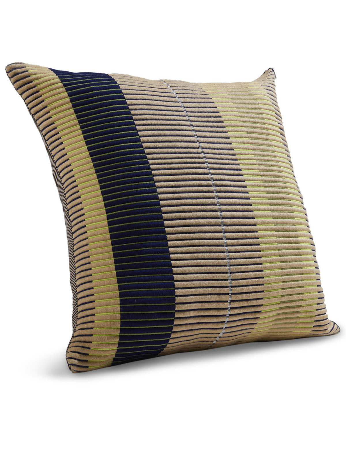 Designed by Mae Engelgeer, the Chumbes cushion collection takes inspiration from the Chumbe Inga, a traditional Colombian garment with characteristic symbols. Comprising of scattered cushions and floor cushions, the Chumbes collection is handmade using natural cotton and fine metallic yarns. The ribbed structures create a unique graphic composition that follows a deeply rooted weaving technique specific of the Sibundoy region.