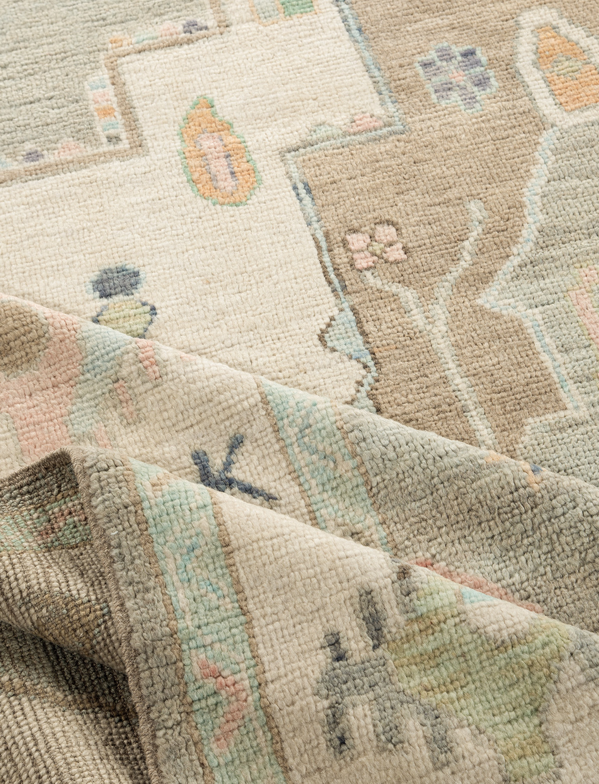 Anatolian Avanos rugs originate from Emirgazi, a small village of the Avanos region in South-central Turkey. Meticulously hand-knotted in the homes of local weavers according to an ancient weaving technique, Anatolian Avanos rugs are characterised by a distressed look unlike any other classic rugs. Crafted using pure new wool and dyed with natural vegetable dyes, each rug is a one-of-a-kind creation featuring simplified traditional symbols and medallion elements in contrasting vibrant colours.
