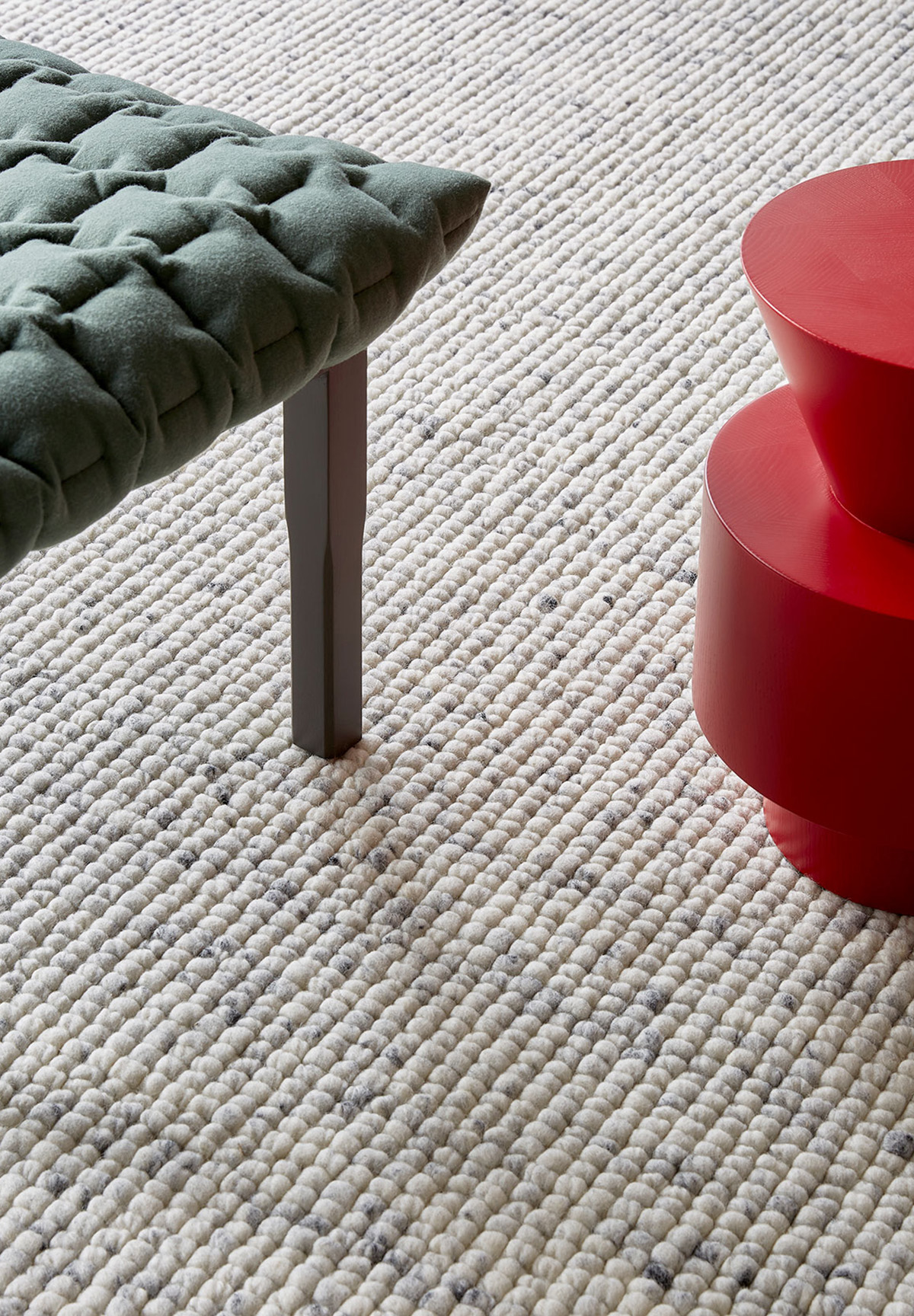 Made in The Netherlands from pure New Zealand wool, our own Beach Life range has been in production for thirty years. Thanks to a unique fusion-bonded structure, the texture of Beach Life is a firm, unchanging favourite. The variety of colour mixes offered is continually developing – though we do still offer some designs from the 1980s that occupy a special place in the Halcyon Lake heart! Thanks to a unique fusion-bonded structure which allows it to be easily joined to any size required, most Beach Life options are available within two weeks of ordering, and can also be installed as wall-to-wall carpet.