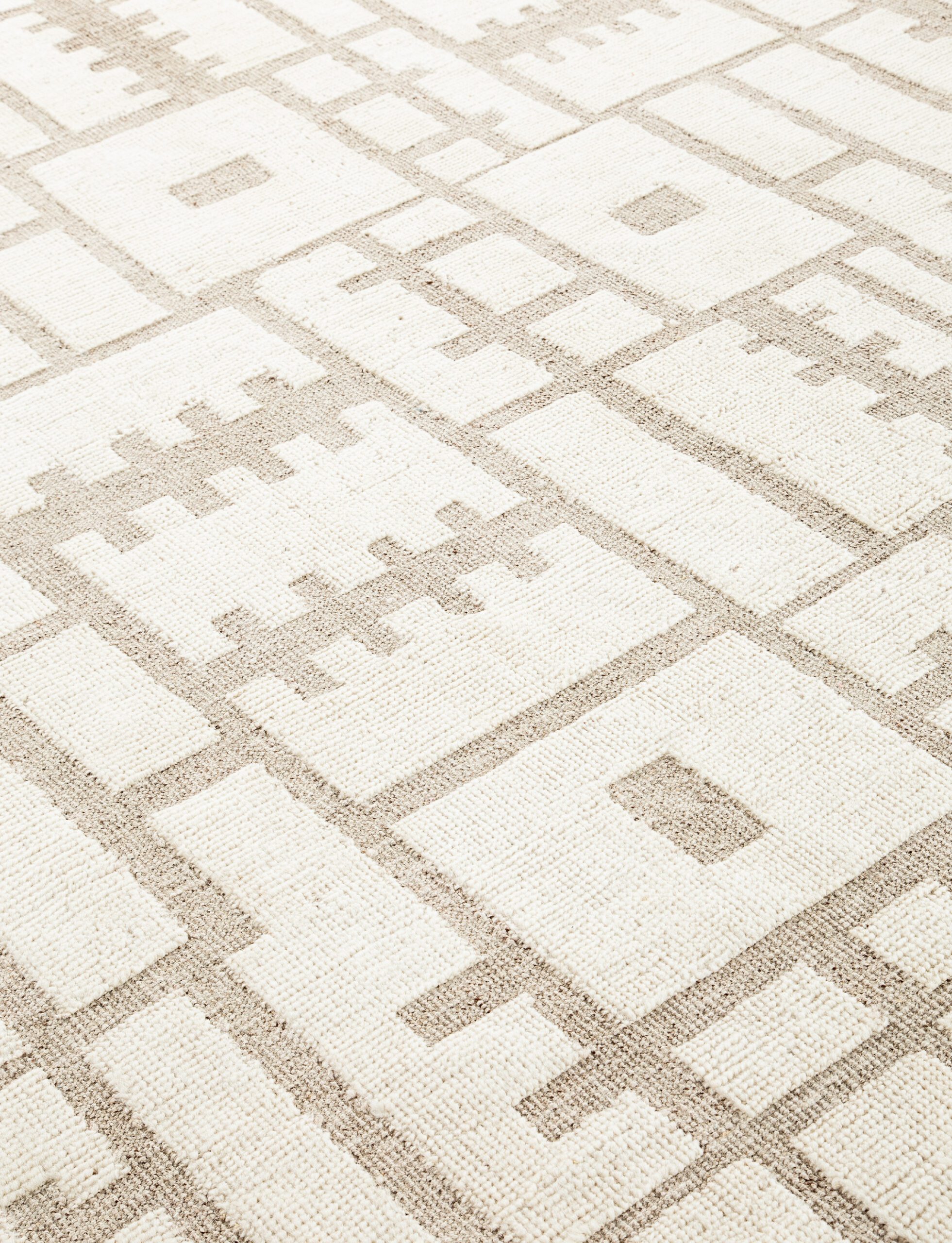 Handcrafted by talented artisans in Pakistan, our Daska collection truly embodies their skilful craftsmanship. Every rug within this collection is unique, hand-woven using either undyed yarn or earthy tones of brown, beige, and grey. These rugs feature a flat woven background that provides the perfect canvas for the tribal geometric patterns to shine, creating a subtle yet striking contrast with their higher pile height.