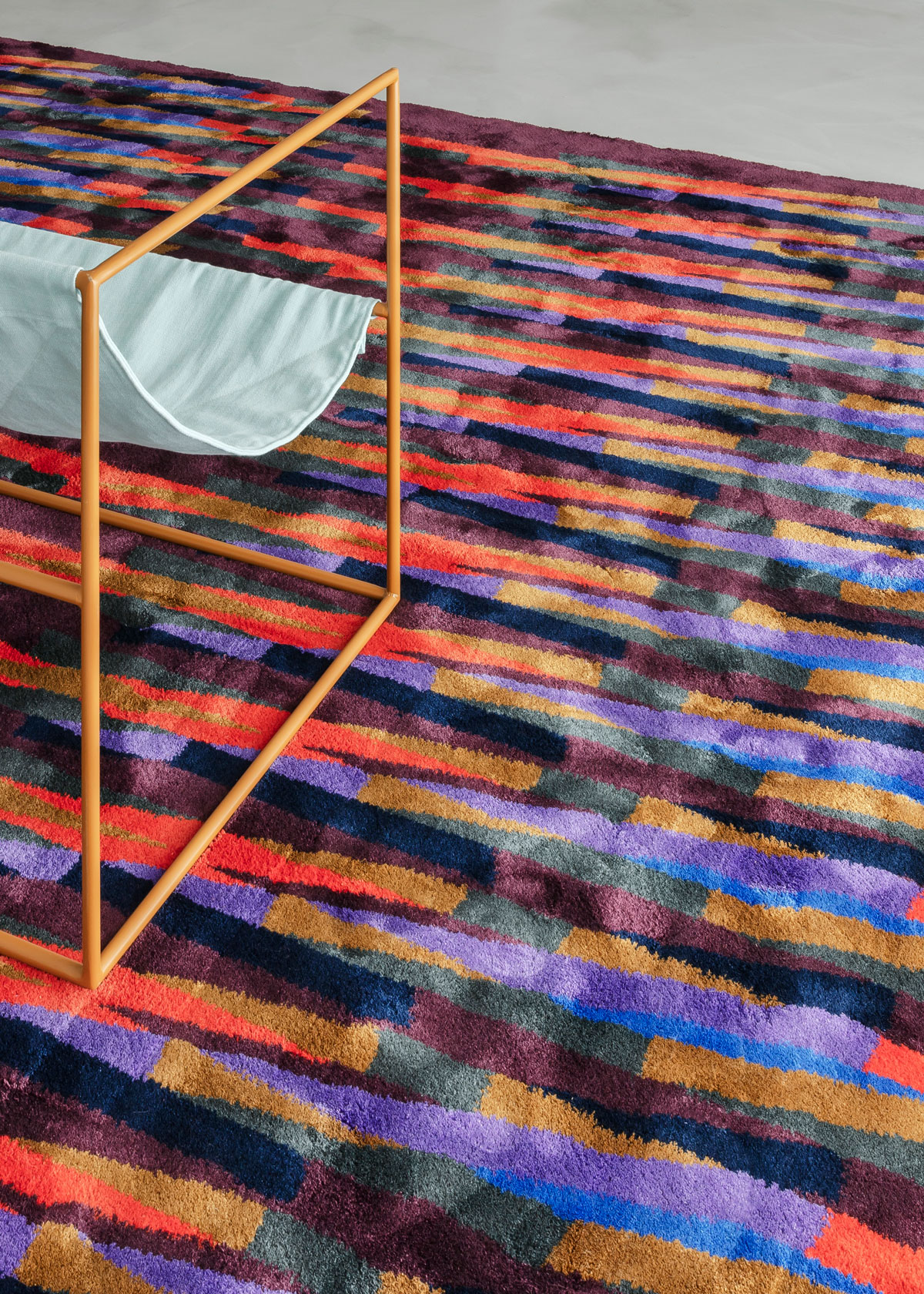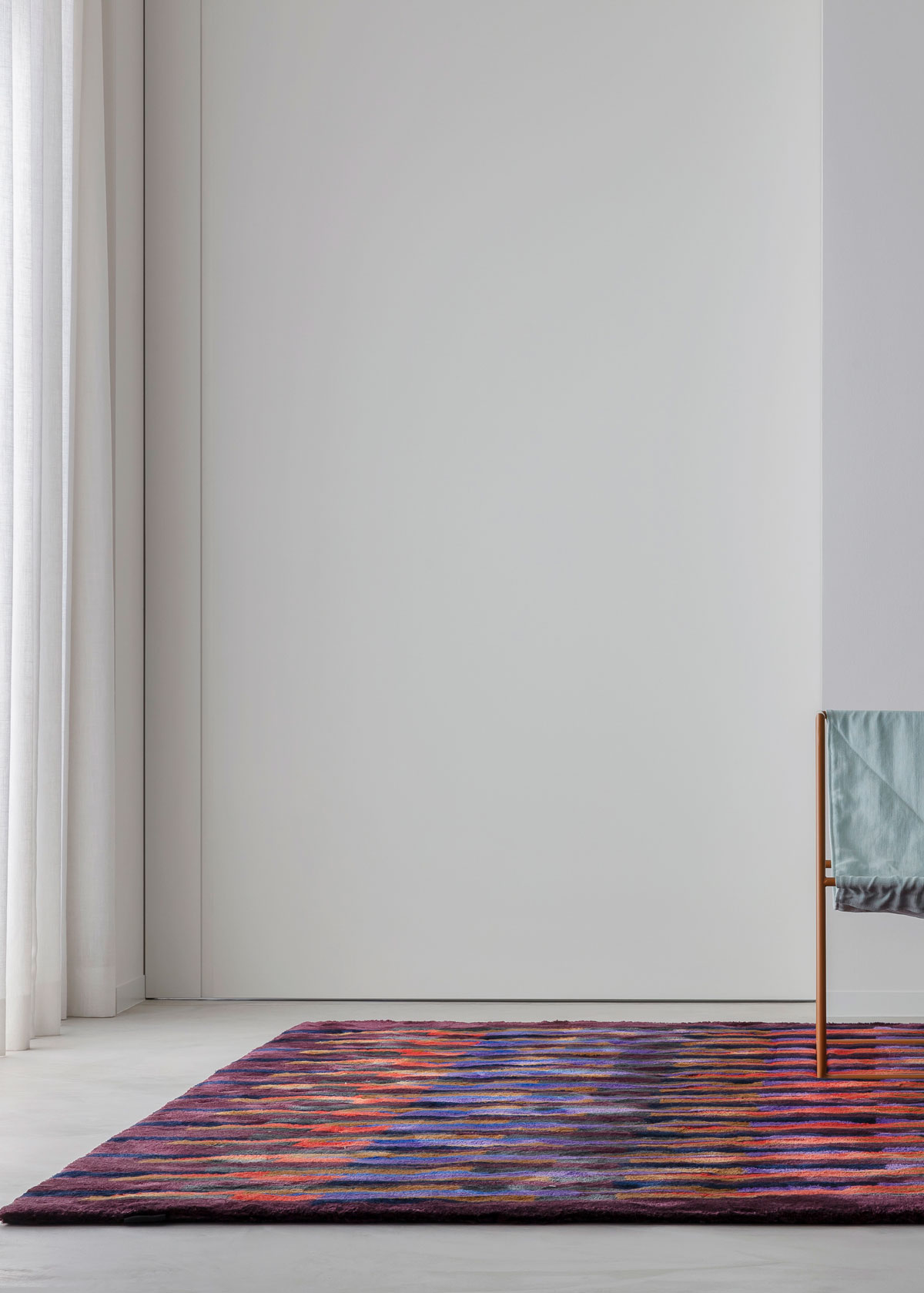 Designed by Dutch textile designer Ben Beirens for JOV, Perspective Stripes Marni is a play on graphic geometric compositions. Characterised by an abstract approach to striping, this reimagined pattern creates a sense of transparency and depth through the overlapping of colours and shapes. Hand-tufted in a luxurious pure Belgian linen for its high quality and durability.
