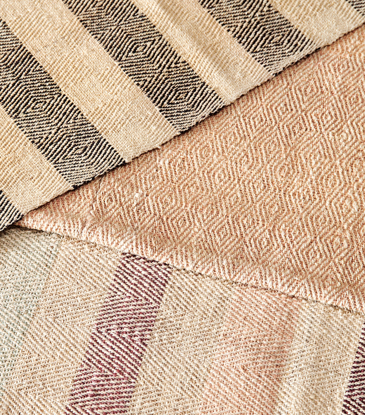Woven using hand-spun pure new wool and natural vegetable dyes.