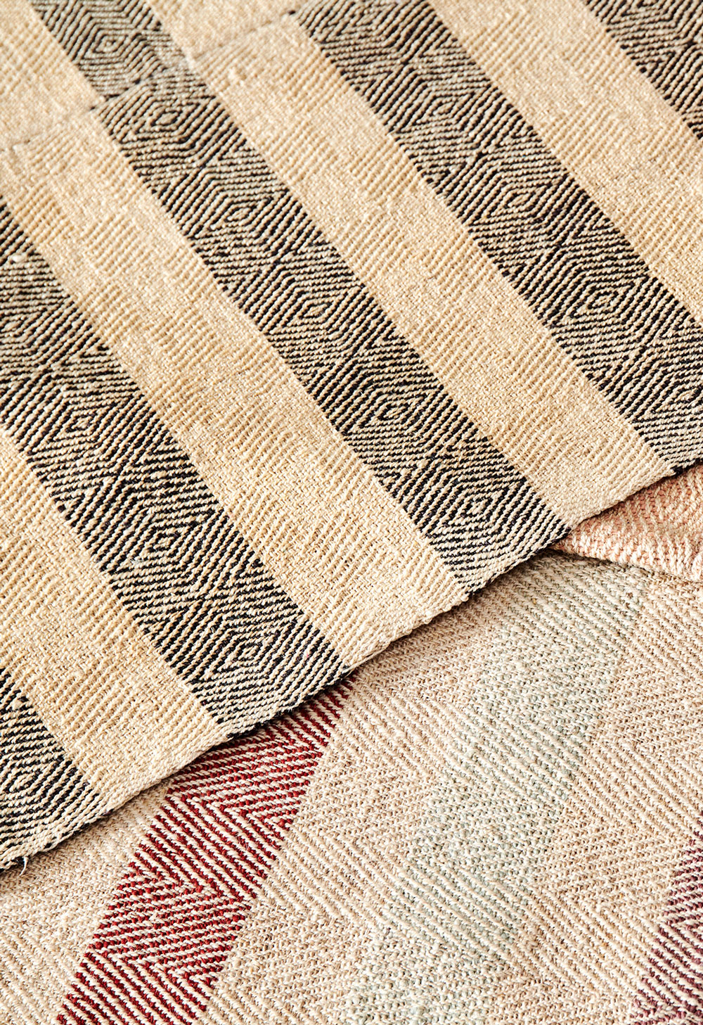 Woven using hand-spun pure new wool and natural vegetable dyes.
