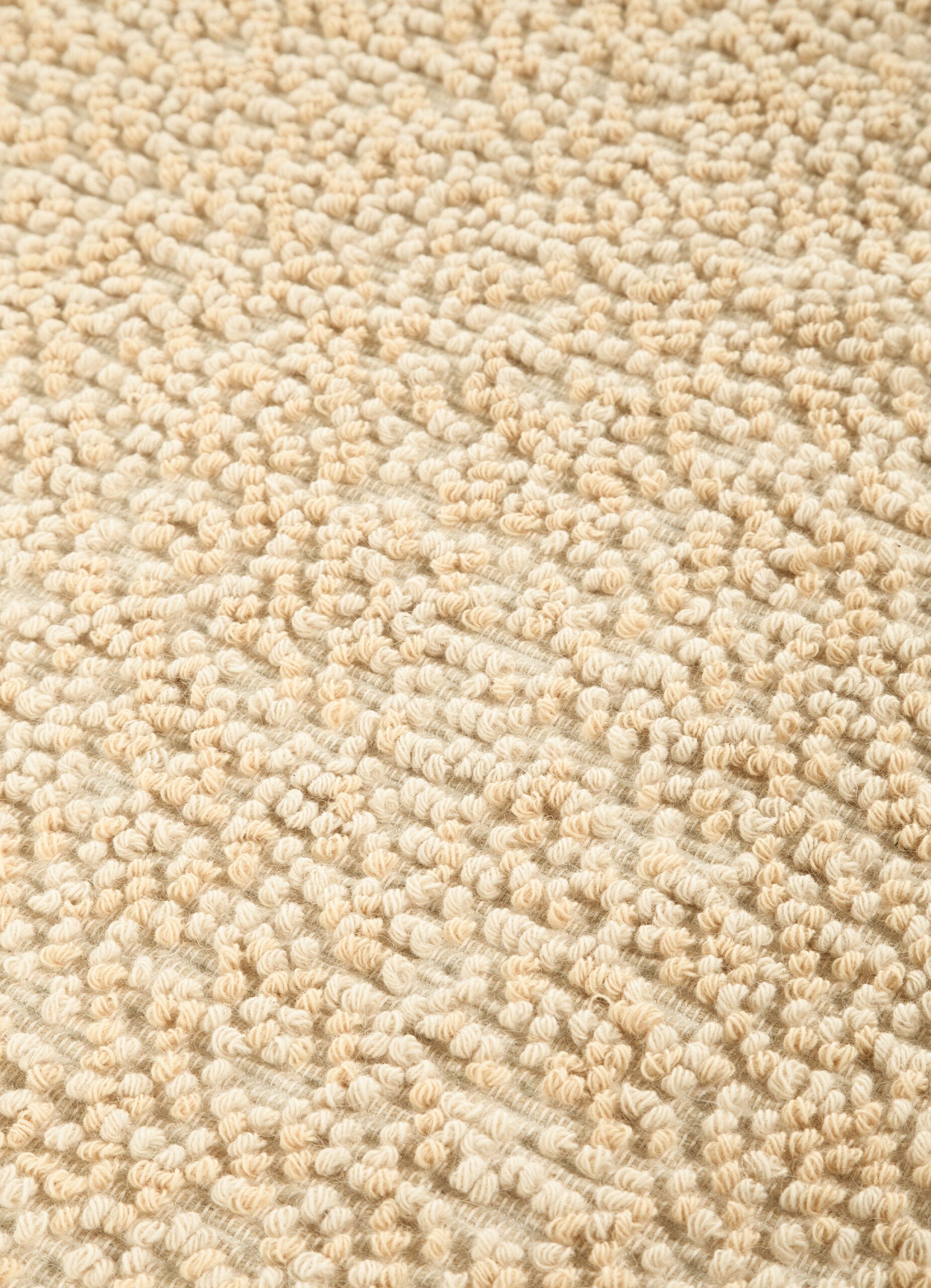 Oru draws inspiration from the Sardinian word for “border”. The seemingly simple design puts a fresh spin on the classic monochromatic rug by incorporating a minimalistic border that frames the field. Upon closer look, the variety of textures throughout the rug becomes apparent, intricately woven using a variety of weaving techniques typical of the island.