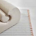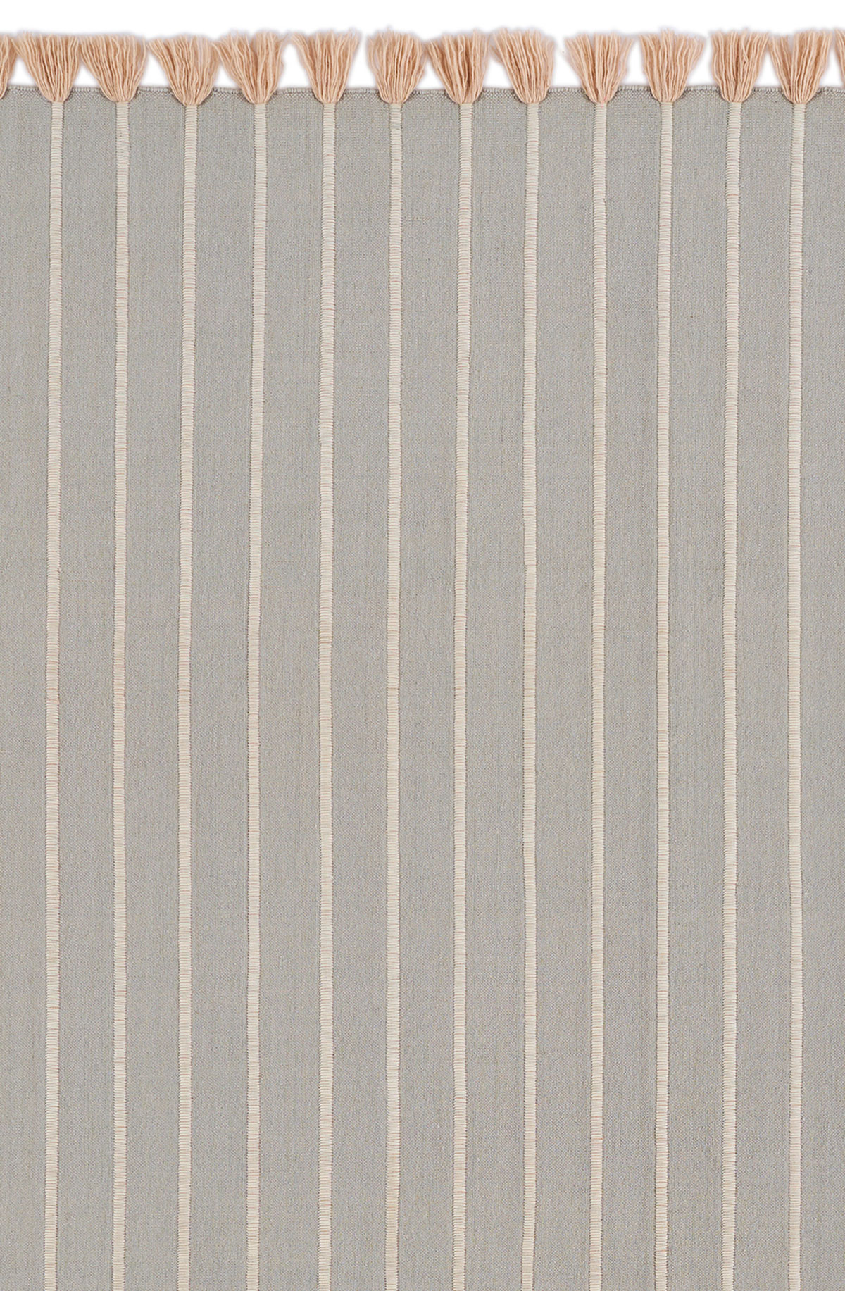 Through experimentation and research into materials and craftsmanship, an innovative combination of two weaving techniques was used; a rib weave and a double weave. The ribbed weave forms the protruding ribs, which, through the use of a large number of weft threads are then knotted to form the fringe detail. The flat stripes between are handwoven in a fine double weave, allowing for the texture and colour contrast to be possible. Handmade in India using high-quality wool yarn, the RIB collection is available in two sizes with three rib variants; fine, medium and double.