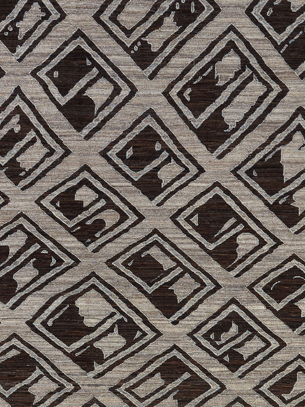 Crafted to improve with age and develop a patina in the tradition of antique carpets. The unique designs in this collection stem from an exploration of African culture; through the shapes and colours found in its traditional textiles. Designed by Jawed Ahmadi, the compositions are heavily inspired by Kuba cloth, commonly produced in the Democratic Republic of Congo and typically characterised by vast and varied abstract geometric designs.