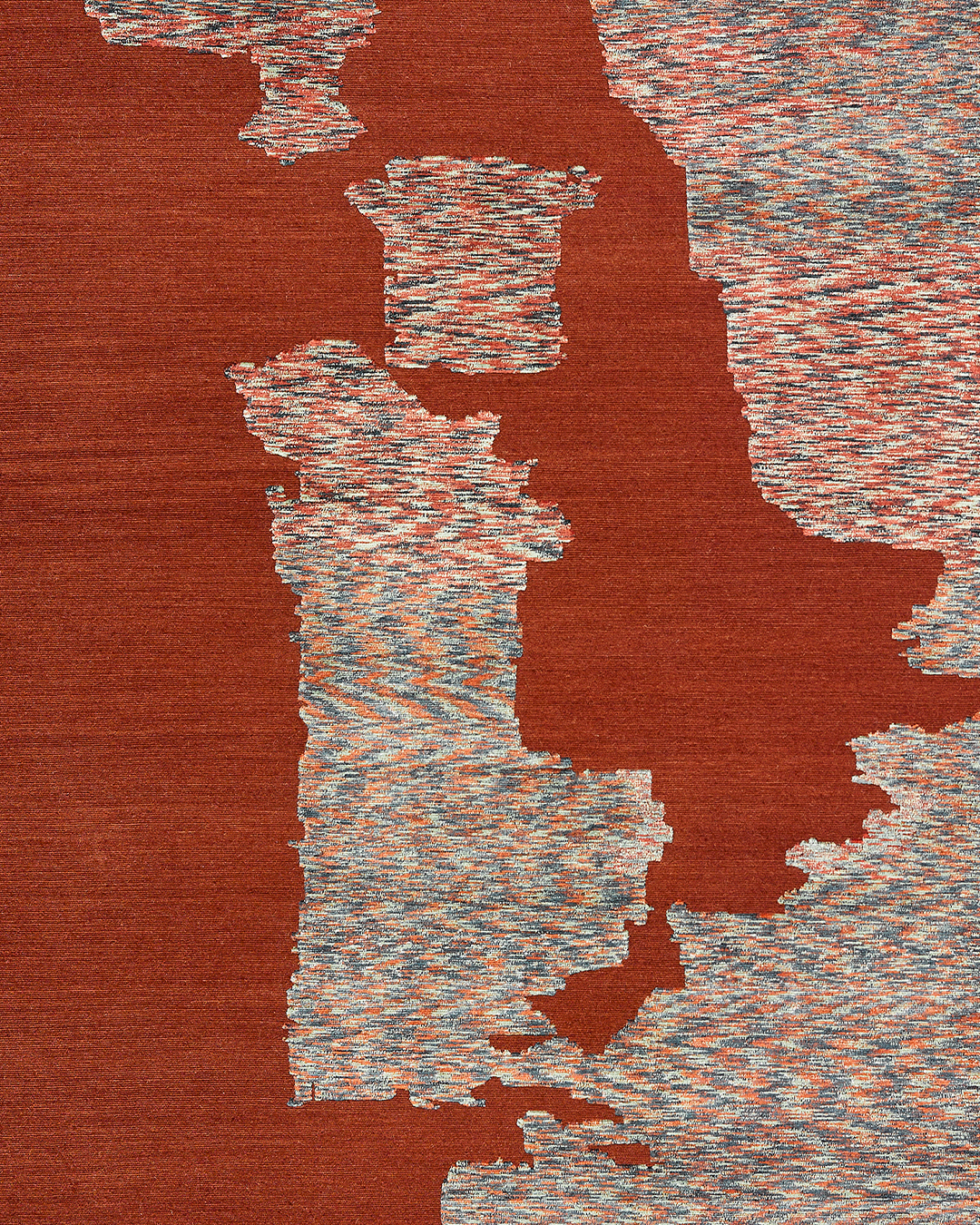 The Tie-Dye collection by Reuber Henning draws inspiration from historical rug fragments found in museums worldwide, blending tradition and innovation. Embracing the unconventional shapes of these ancient relics, each rug becomes a testament to the beauty of imperfection. Hand-knotted in Nepal with Tibetan wool and silk yarns dyed using traditional tie-dye methods, the collection merges fine hand-knotting techniques with a contemporary design ethos. The replacement of original fragmented shapes with Tie Dye yarn unveils new patterns and colours, resulting in delicate repeating zigzag patterns while maintaining the fragment outlines and colours as the sole links to the original inspiration.