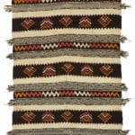 Typically characterised by a series of alternating horizontal stripes made with natural sheep wool in black and white, these flat woven kilims often feature intricately patterned stripes with side fringes.