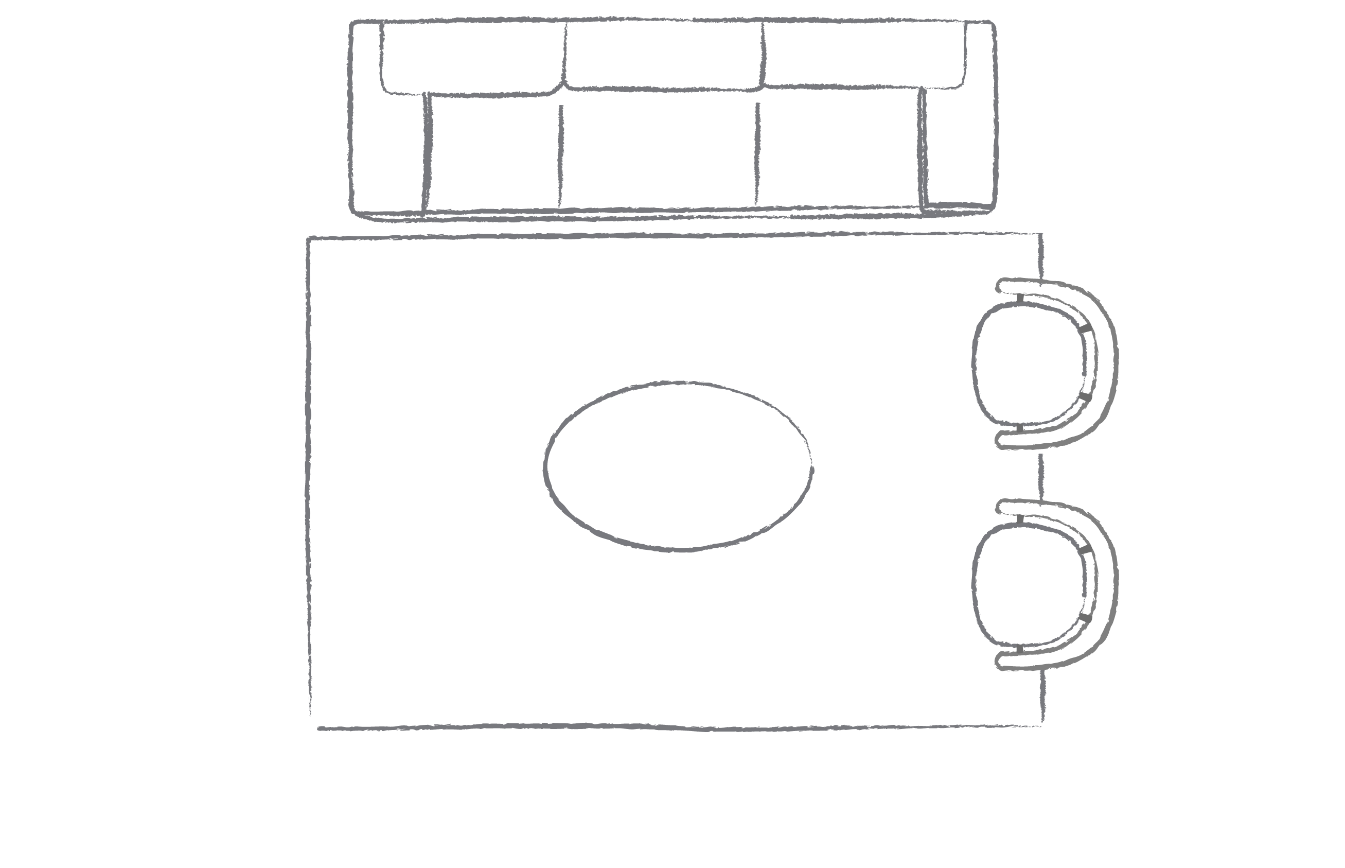 For living spaces, there are many options to play around with. Marking out the size of the rug with masking tape or newspaper on the floor can help you visualise how the size will work in your space. Regardless of your room configuration, we suggest that you allow at least 15-20cm of rug on either side of your sofa.