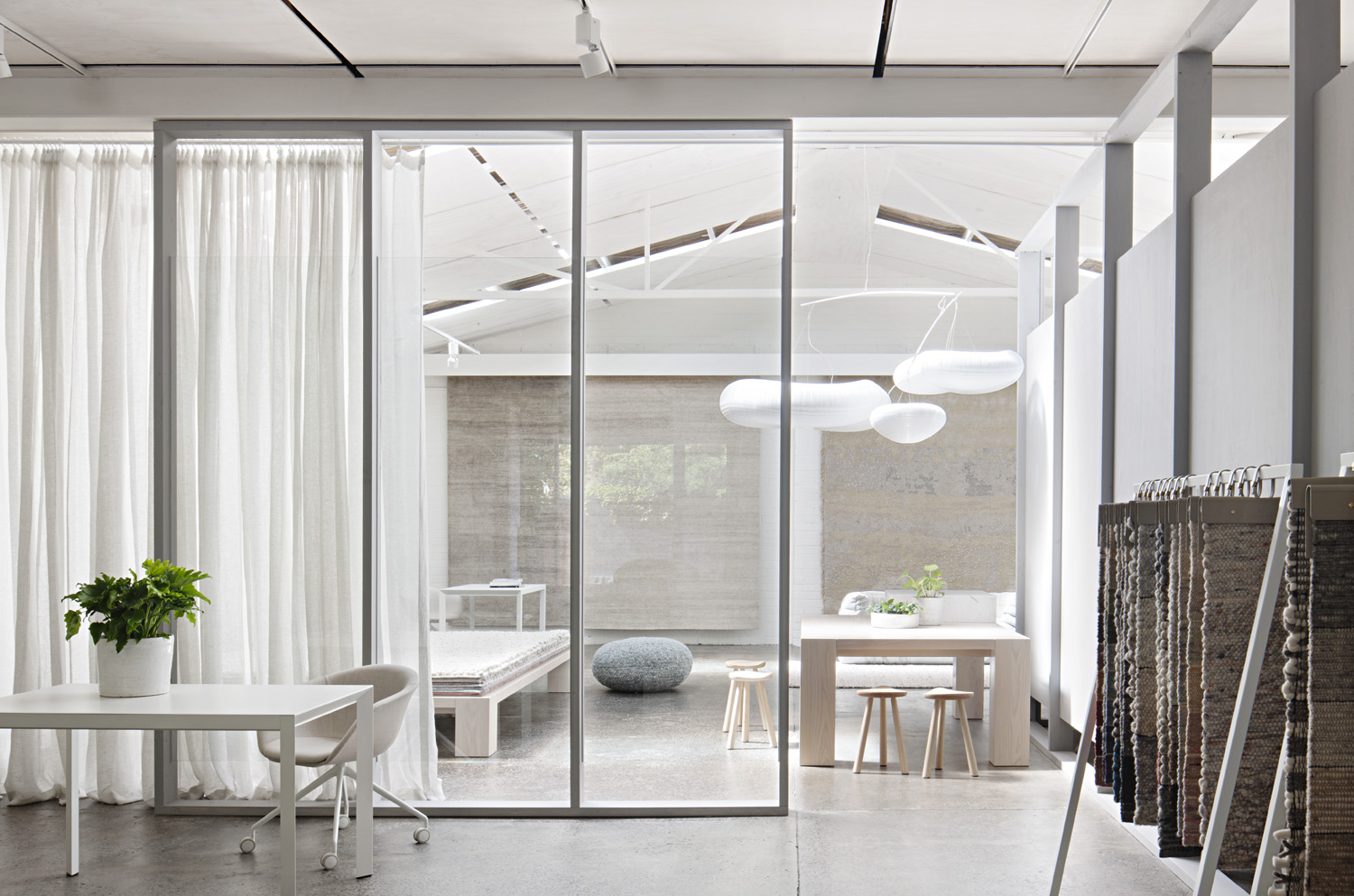 The former warehouse and garage has been converted into a light filled showroom with large areas for viewing oversized rugs as well as displaying an extensive range of our European textured rugs and carpets.