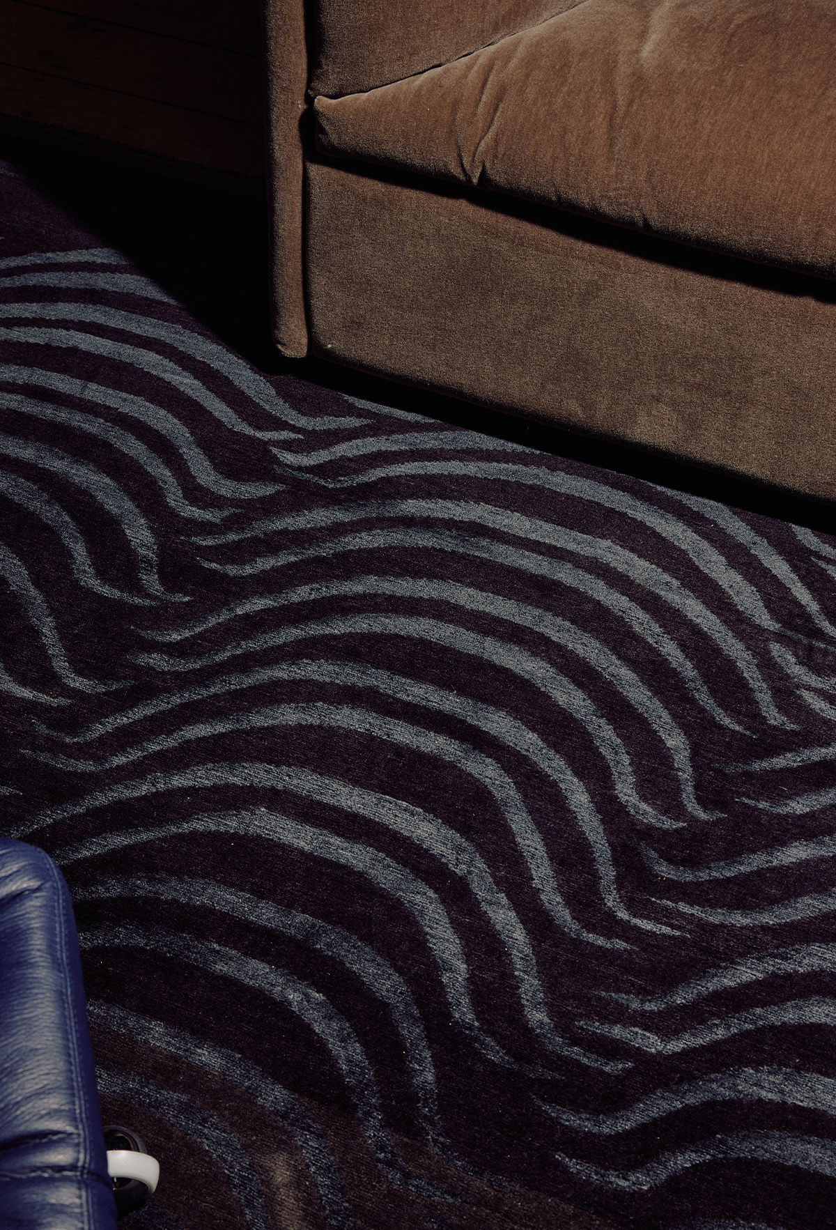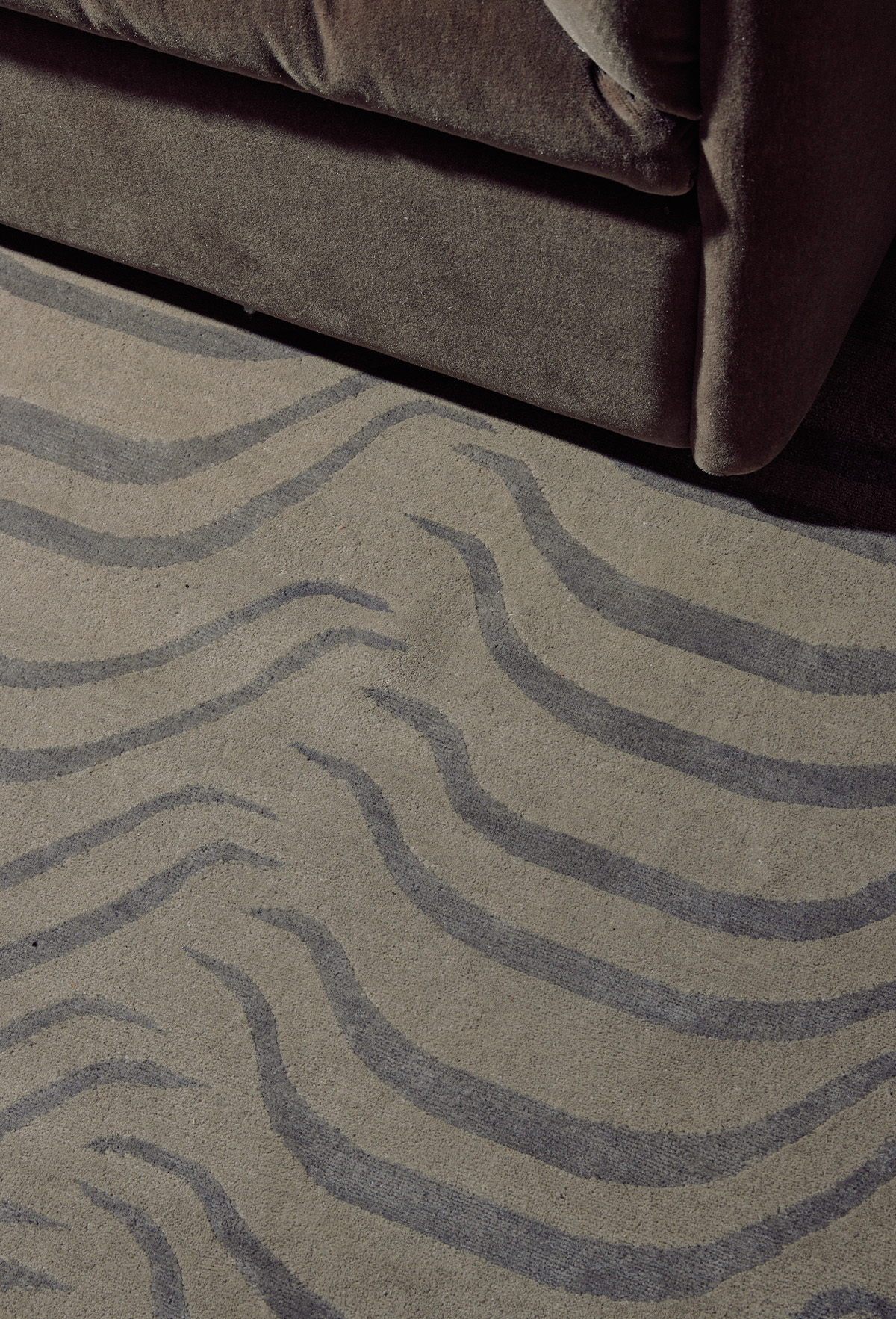 For the floor of the living room Without Studio opted for the subtle yet alluring ‘Tiger Curtain’ rug. Part of Reuber Henning’s traditional collection, the design is inspired by traditional Tibetan Tiger rugs. Featured in the apartment in both grey and black the striking pattern is balanced by delicate colour variations and hints of silk, meticulously crafted using hand-knotting techniques with fine material.