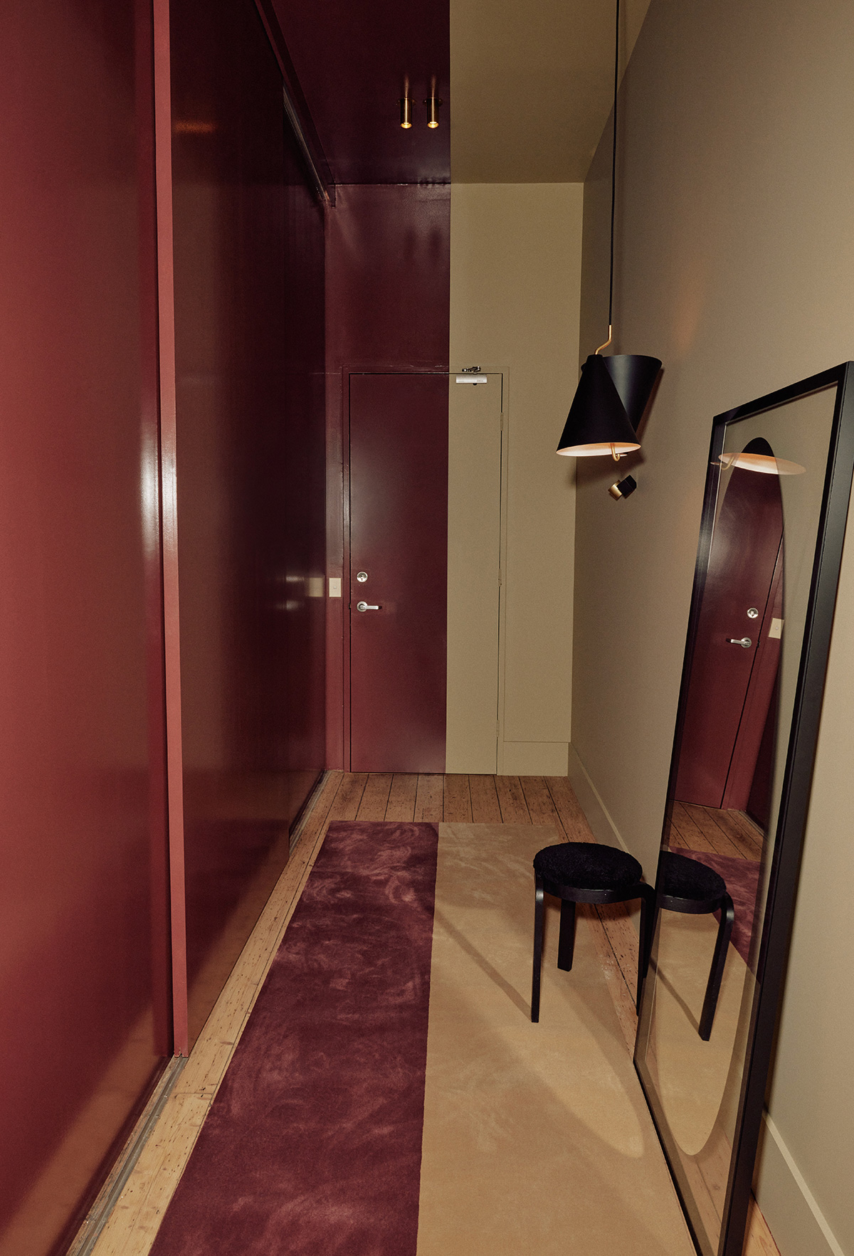 Using our Swiss Valais carpet, we carefully matched the contrasting Jojoba and Rose Wood colourways with the selected paint swatches from Porters Paint Fitzroy. Painted with precision by David Passmore Painting, the outcome was a visually striking and welcoming space.