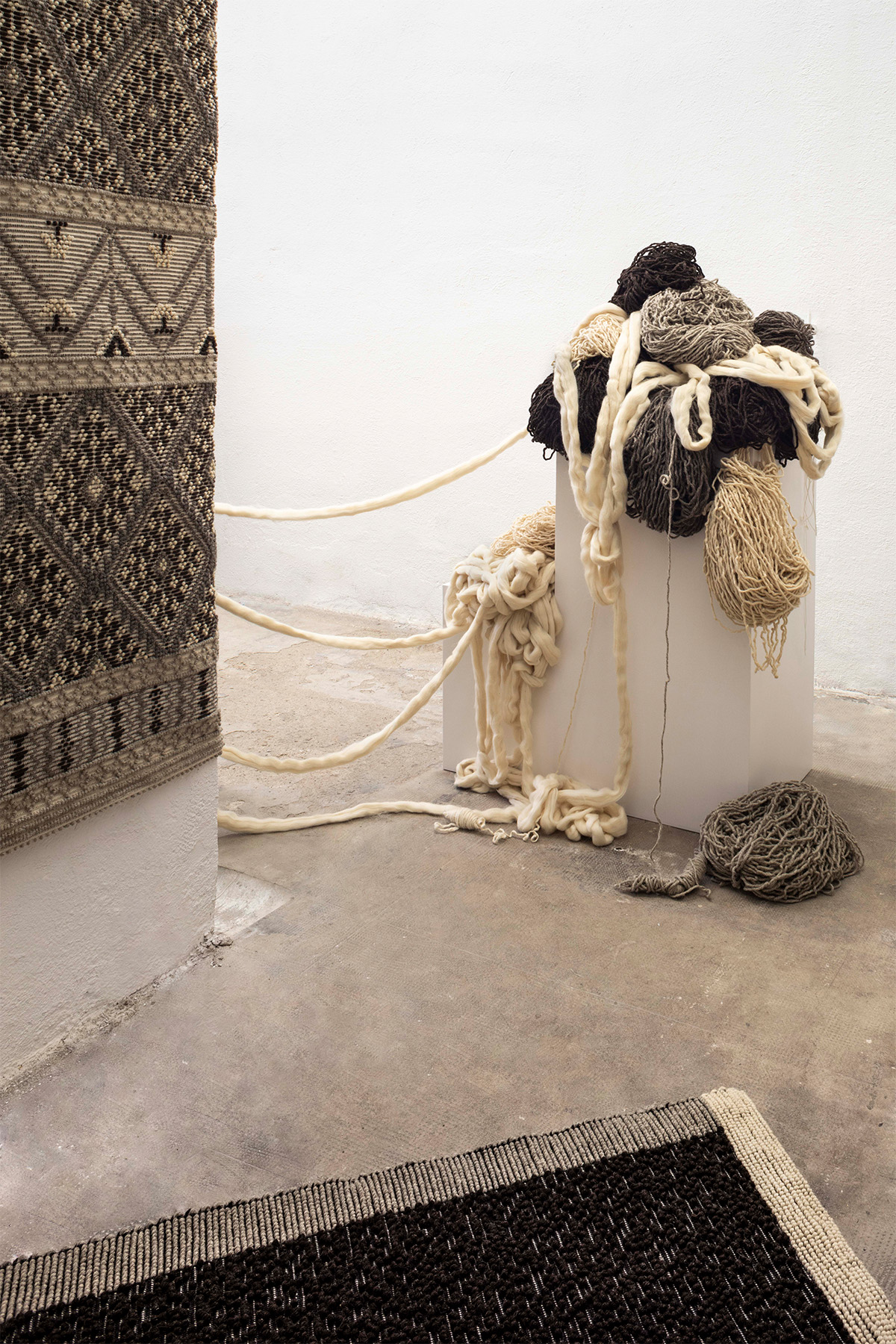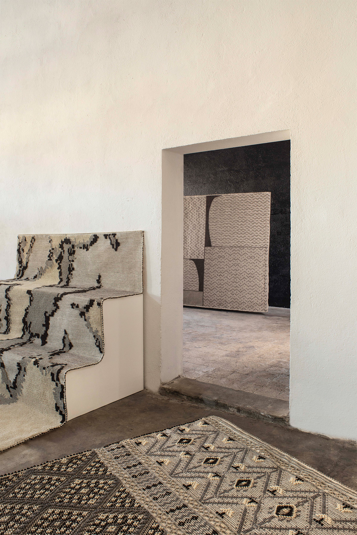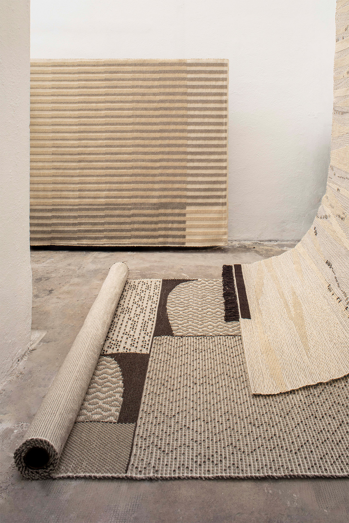 Collaborating with multiple designers, the collection features designs from Mario Cucinella, Anna Galtarossa, Paulina Herrera, Pretziada, Angelika Rösner, Celestino Sanna, and Studio Salaris + SansNom. All rugs are woven solely from natural tones.