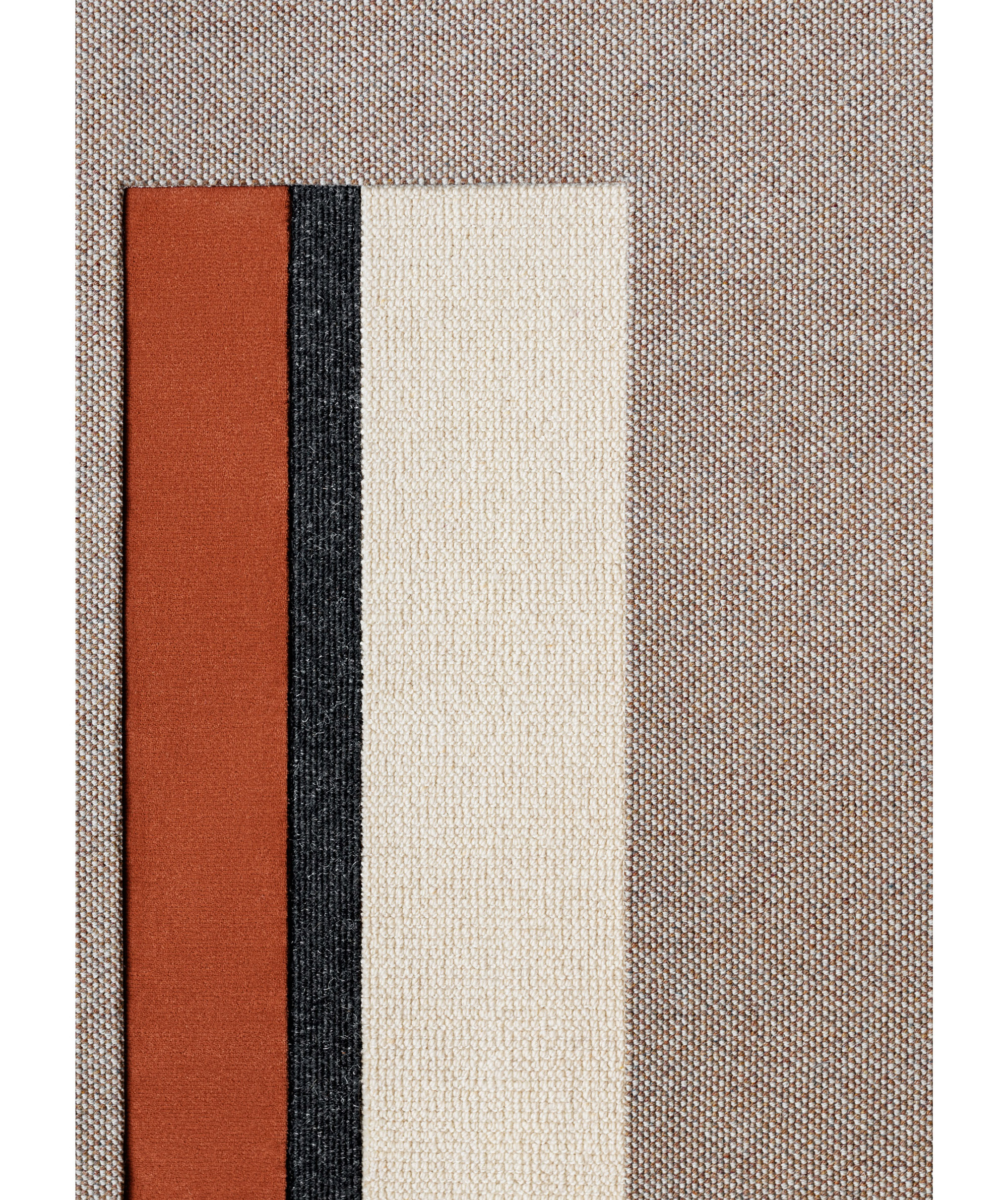 Using the inherent materiality and tactility of carpet as a starting point, the series comprises seven textural compositions that double as three-dimensional artworks. Referencing the collage technique, each image was produced by layering carpet sections that were precisely cut to size then methodically placed to create an artistic representation.